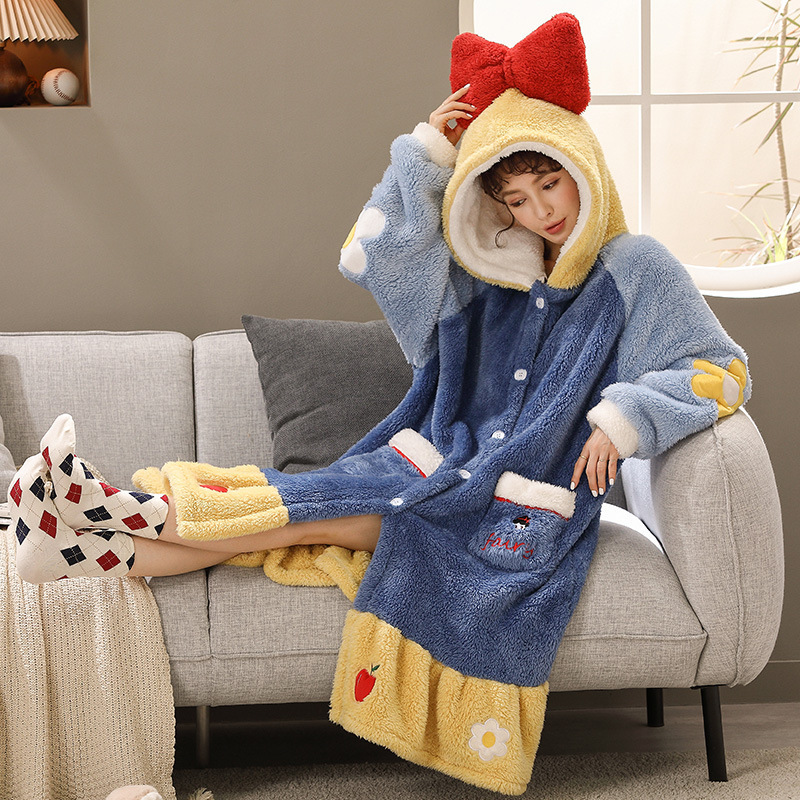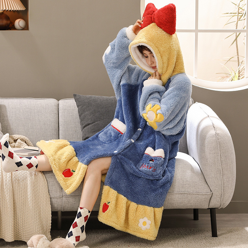 Главная страница > Новая утолщенная ночная рубашка принцессы, мягкий коралловый бархат, утолщенная и бархатная, осенне-зимняя теплая и утолщенная пижама, новая оптовая продажа