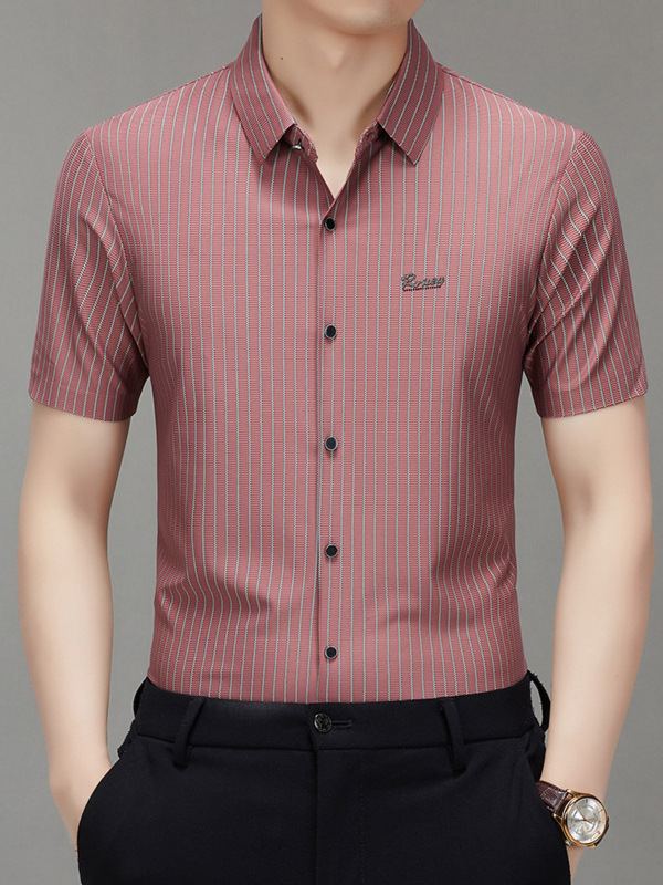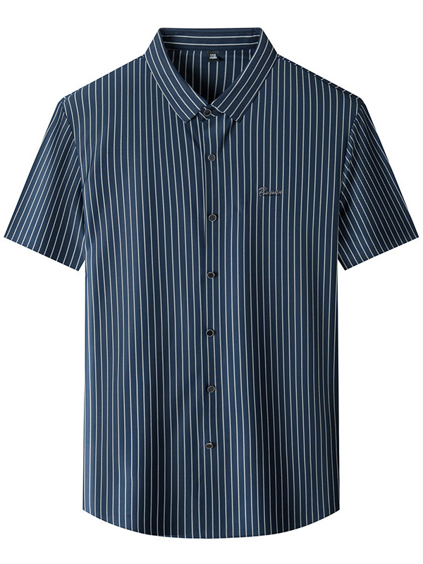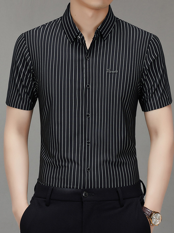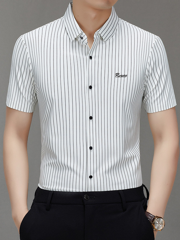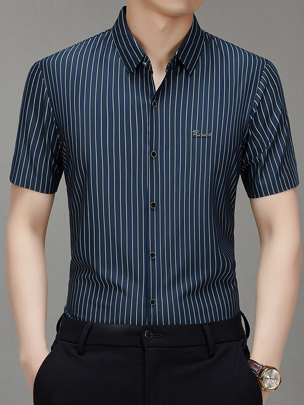 Главная страница > Мужская высококачественная полосатая летняя популярная рубашка из ледяного шелка с коротким рукавом, дышащая, универсальная для бизнес-кэжуал