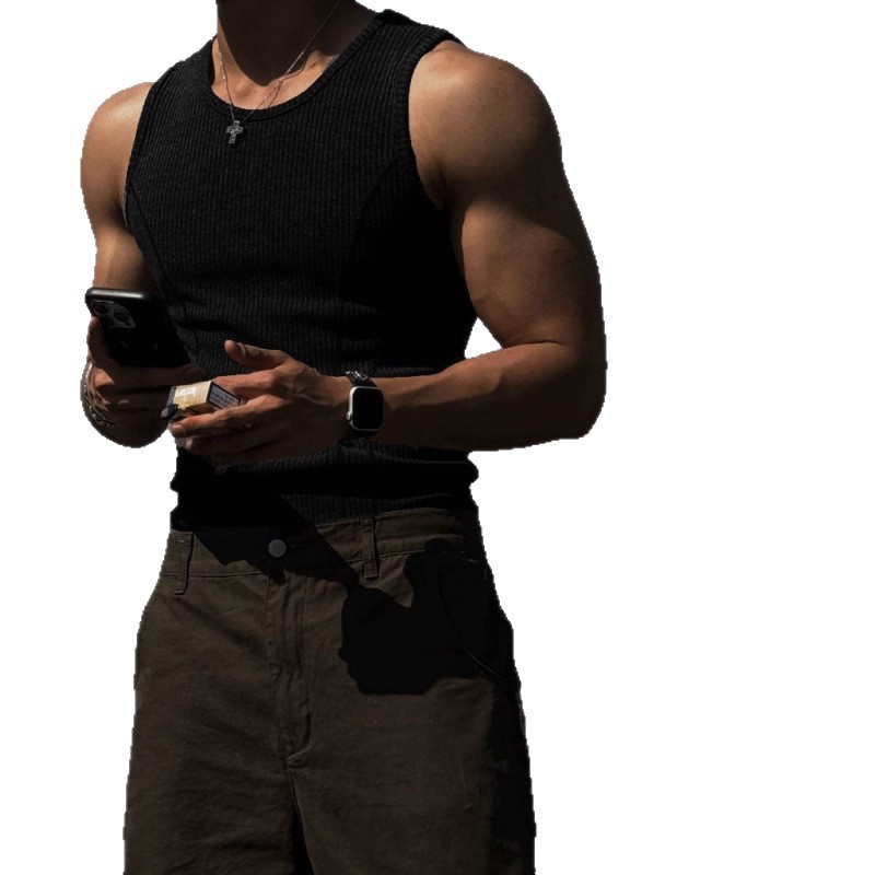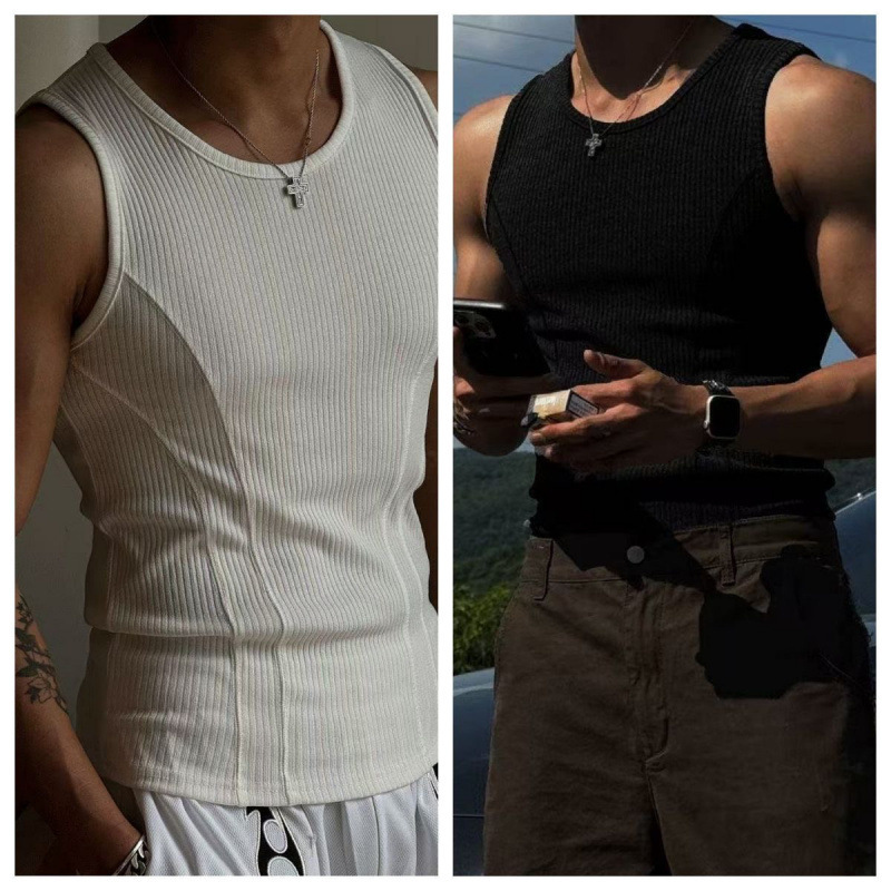 Главная страница > Американский мужской модный жилет, внутренняя одежда, тонкий жилет с резьбой, мужской спортивный тренировочный полосатый жилет, футболка, мужская футболка