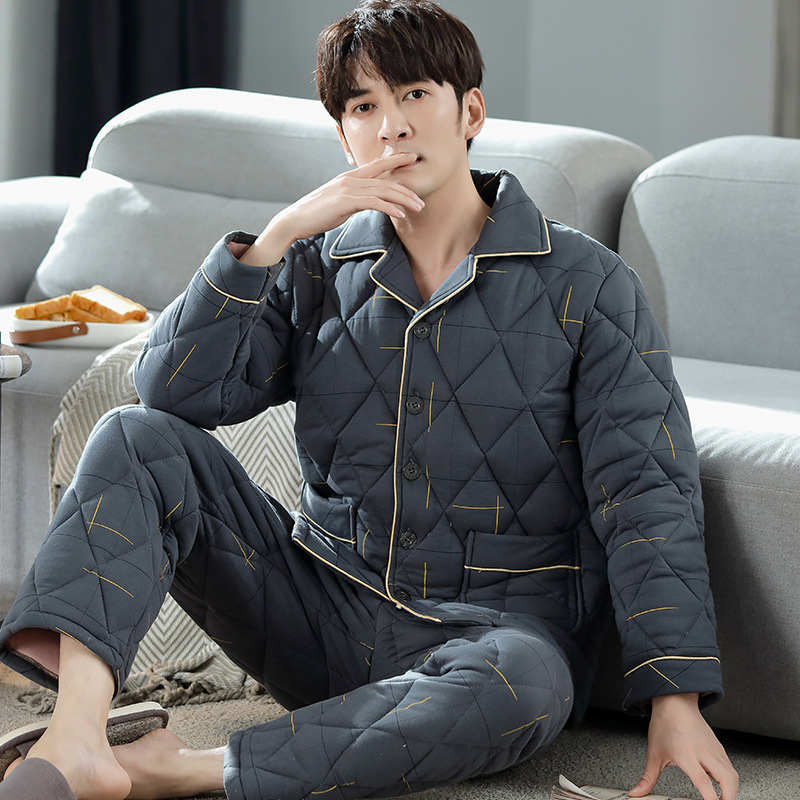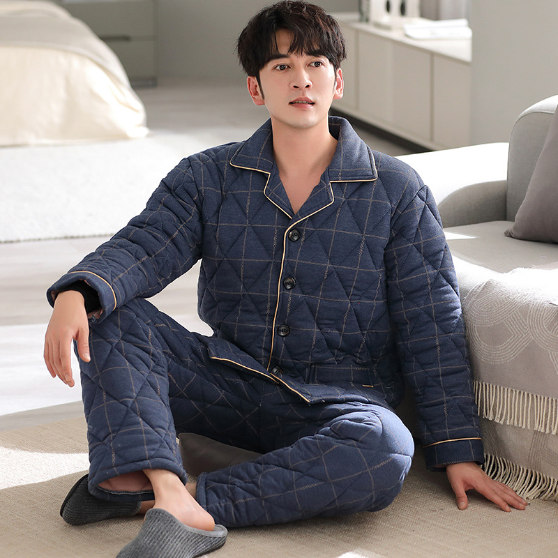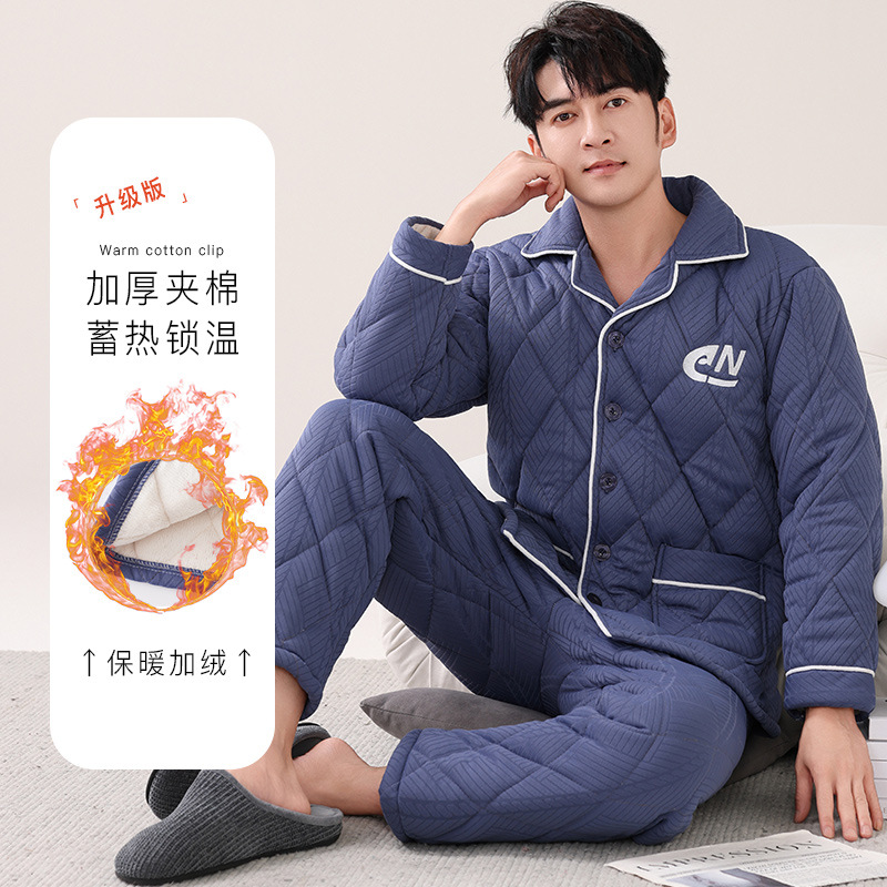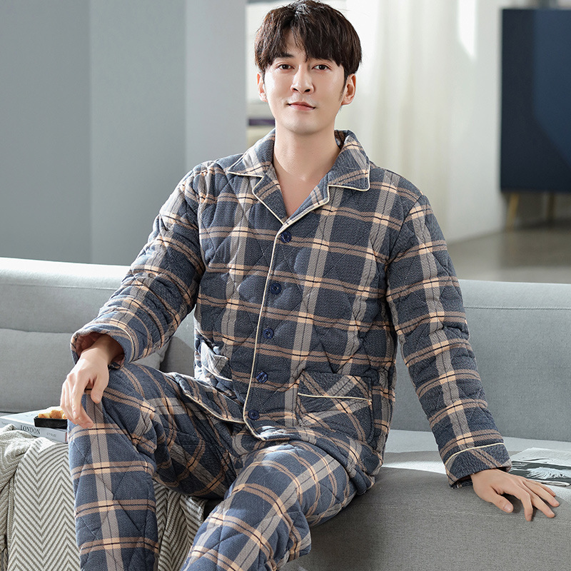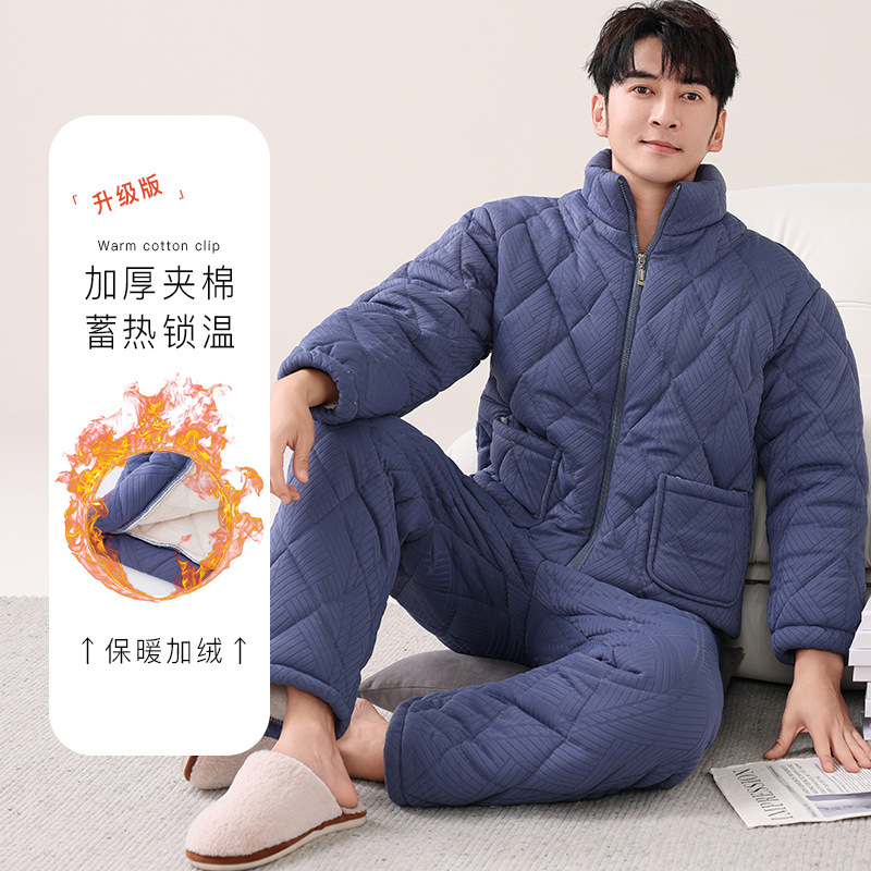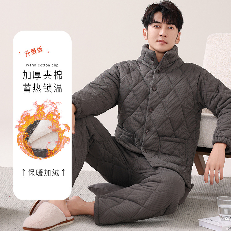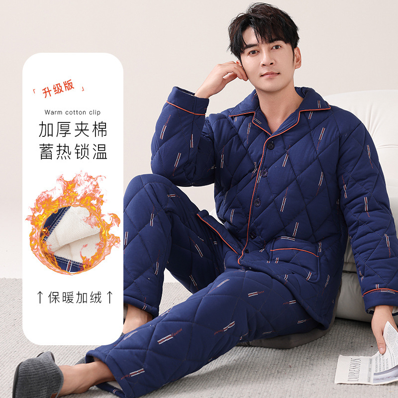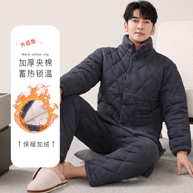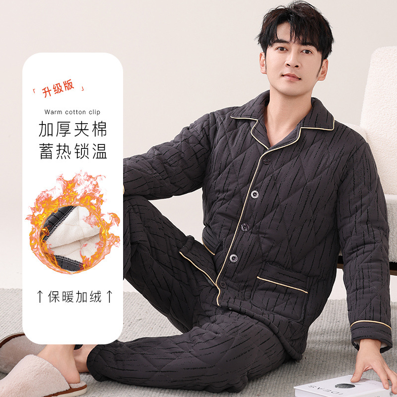 Главная страница > Новые пижамы 2024 года для мужчин среднего возраста, зимняя трехслойная утепленная стеганая куртка, теплый зимний домашний комплект для мужчин