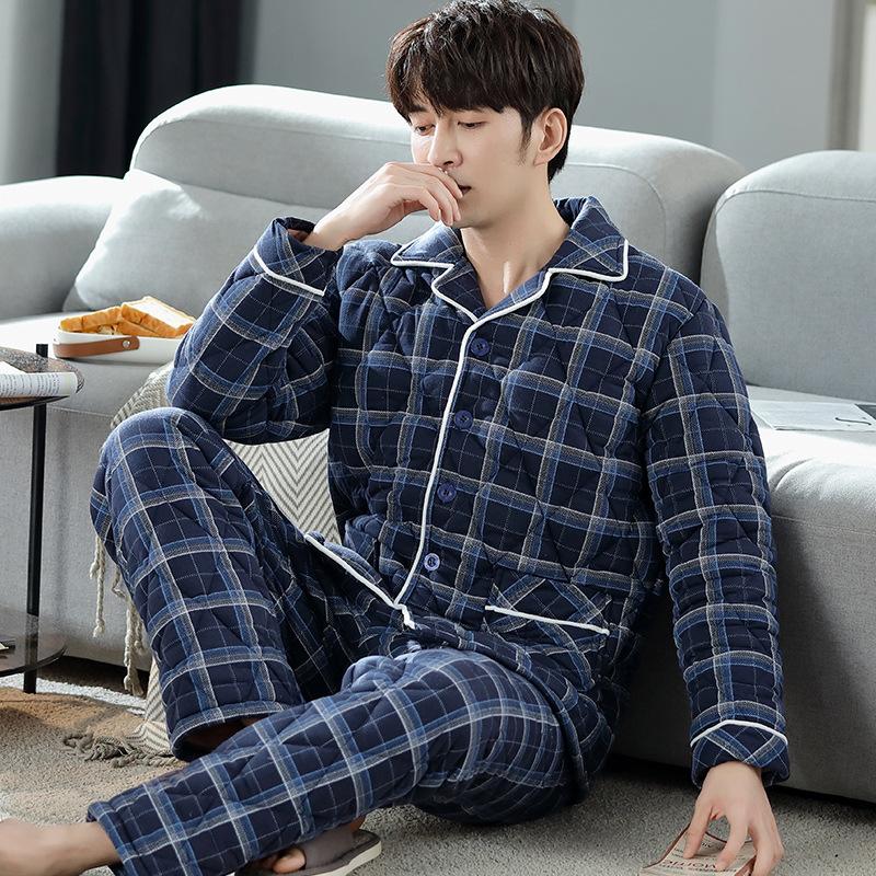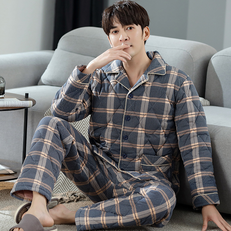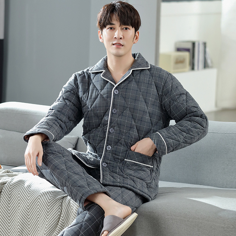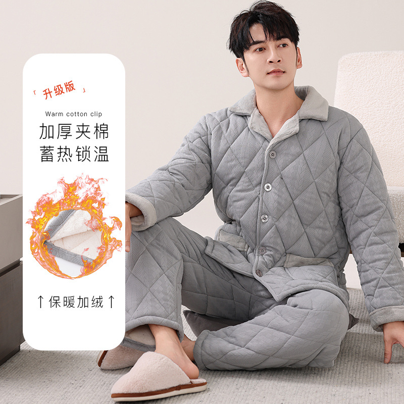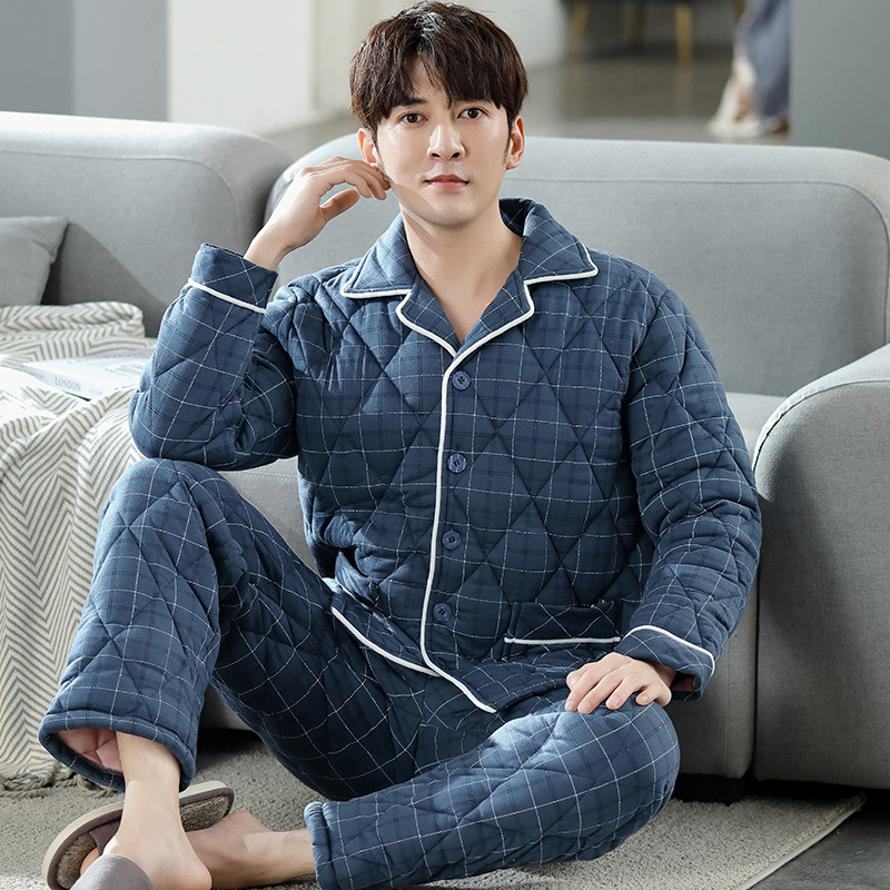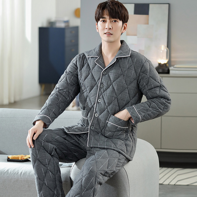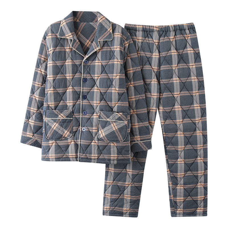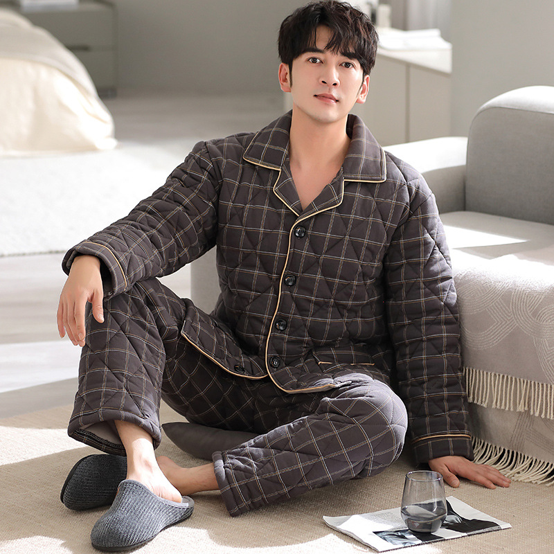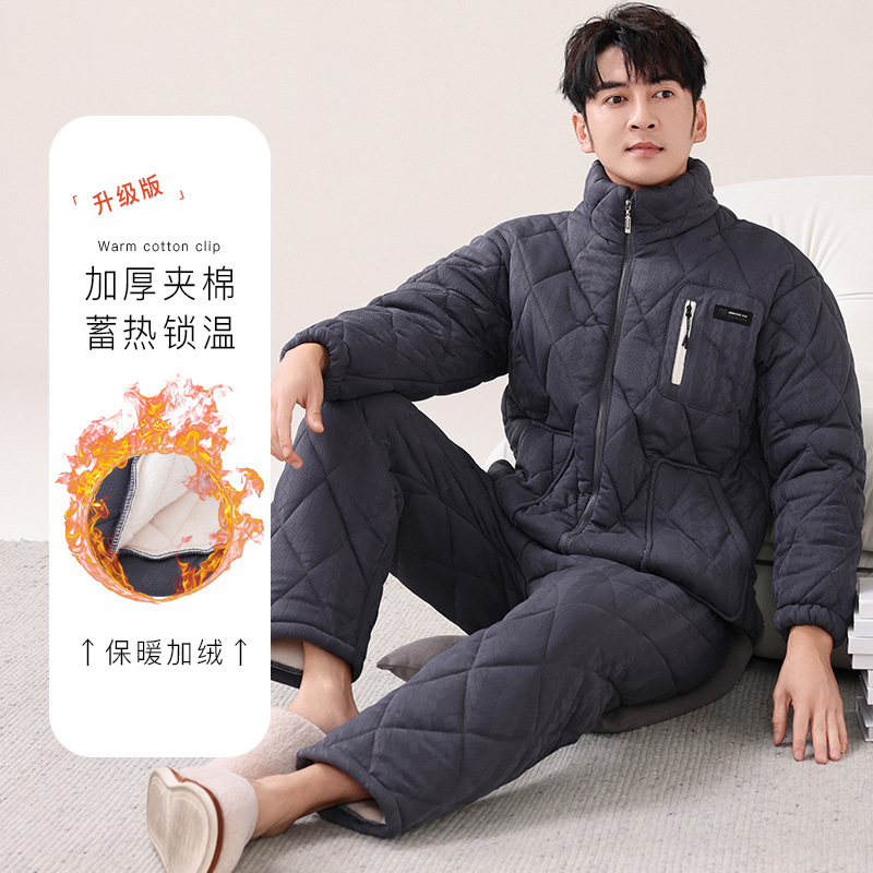 Главная страница > Новые пижамы 2024 года для мужчин среднего возраста, зимняя трехслойная утепленная стеганая куртка, теплый зимний домашний комплект для мужчин