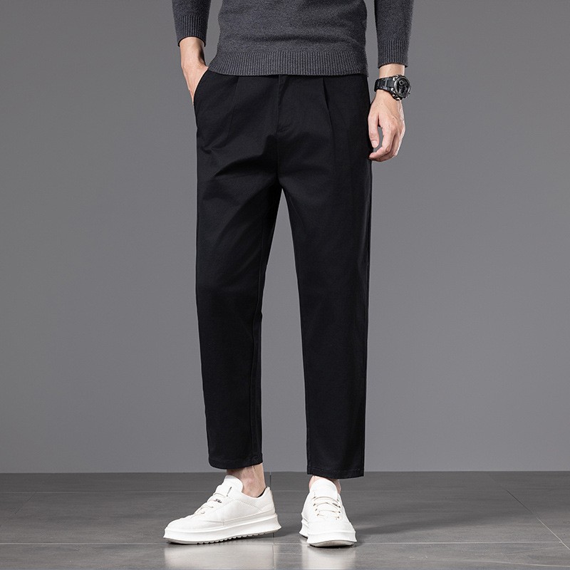 Большие размеры мужские осенние и зимние новые сплошные повседневные брюки мужские свободные большие размеры простые дикие эластичные маленькие прямые брюки