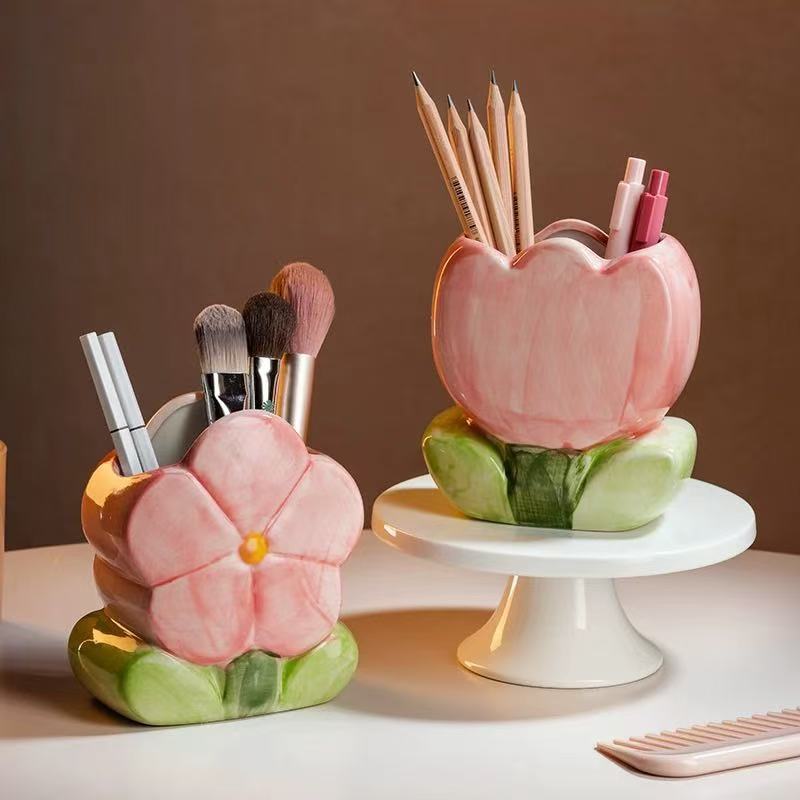 Главная страница > Держатель для ручек, цветок тюльпана, керамические украшения, настольный офис, общежитие, креативное ведро для хранения кистей для макияжа, хранение канцелярских принадлежностей