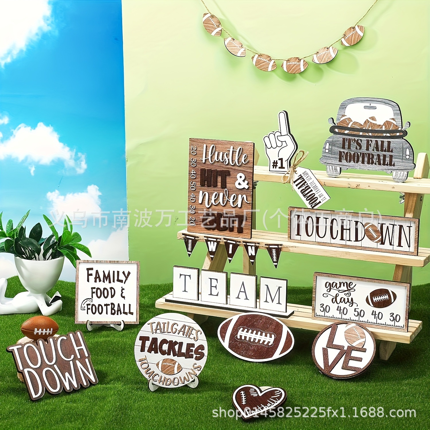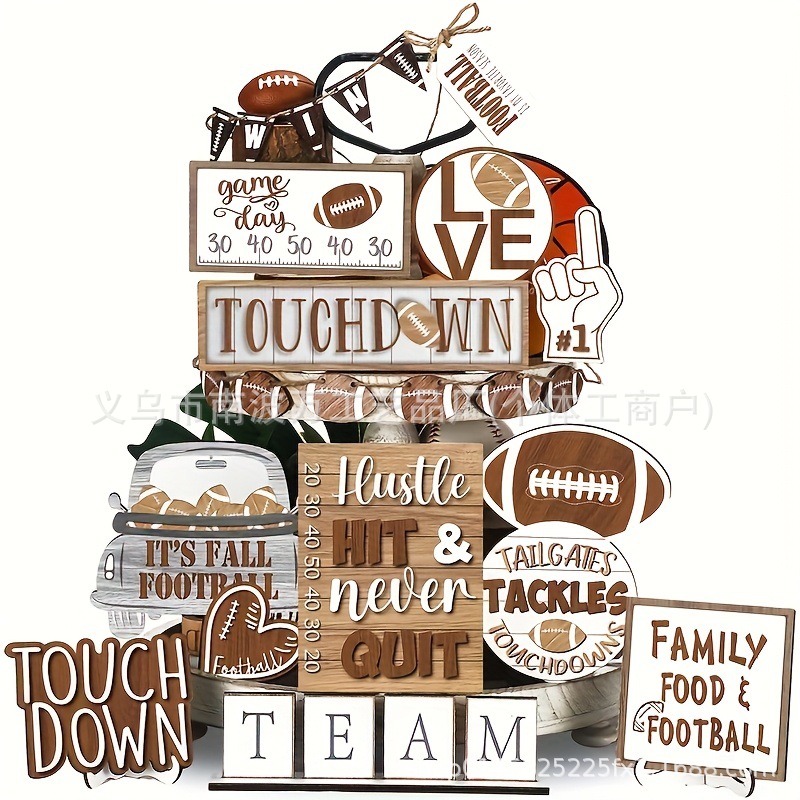 23 шт., деревенский деревянный многоуровневый поднос для футбола, декор в стиле фермерского дома, игровой день, семейный футбол, подвесные украшения