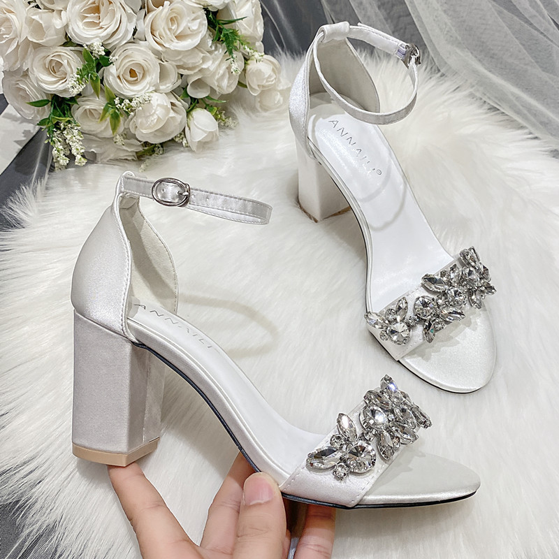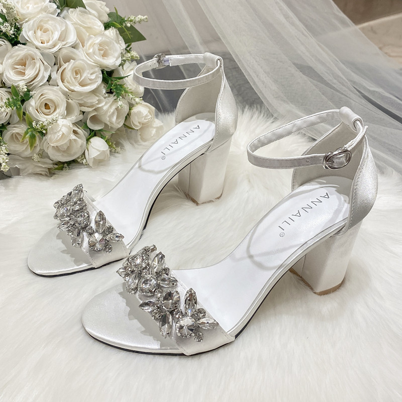 Главная страница > Трансграничные 2022 новые сандалии на блочном каблуке со стразами, женские белые атласные платья, банкетные туфли с свадебными туфлями