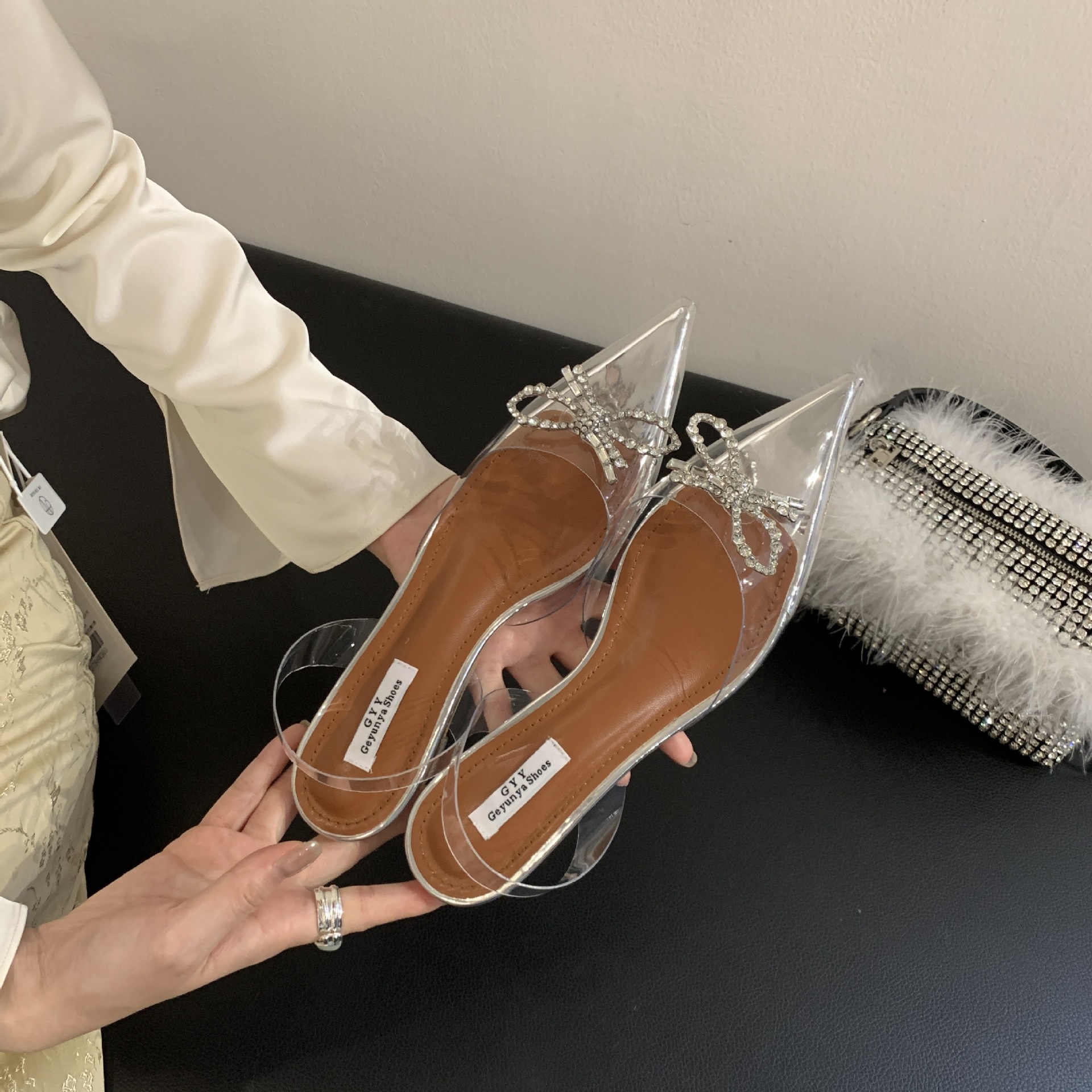Главная страница > Баотоу прозрачные сандалии на среднем каблуке женские темпераментные банты кристалл толстый каблук сексуальный каблук со стразами на высоком каблуке одиночные туфли