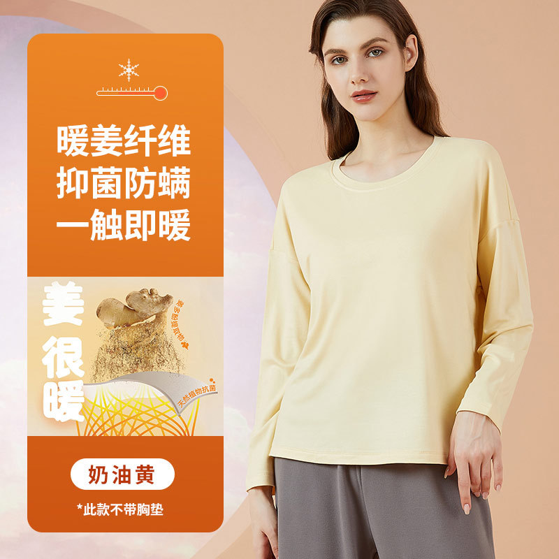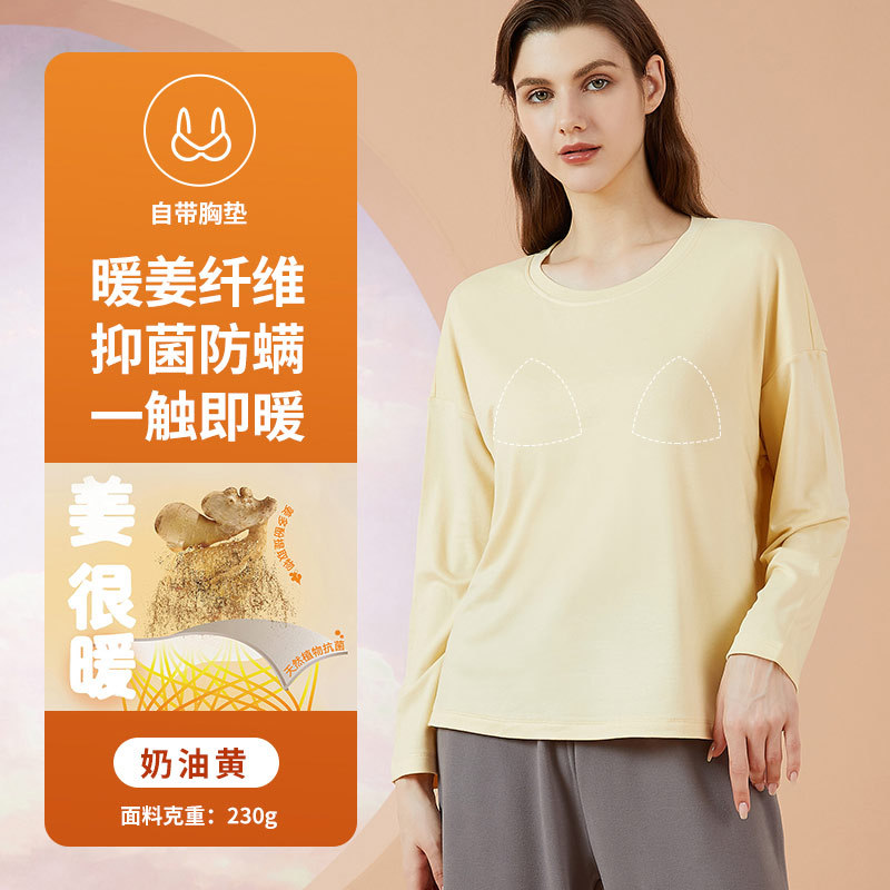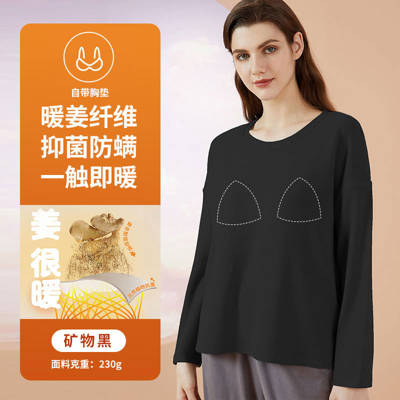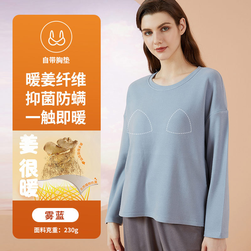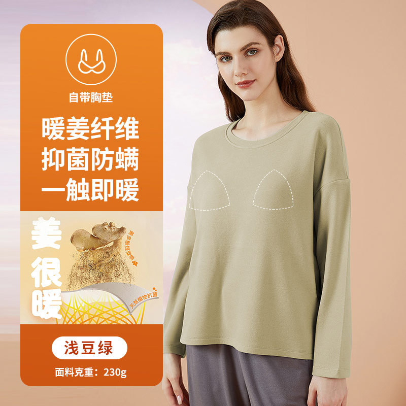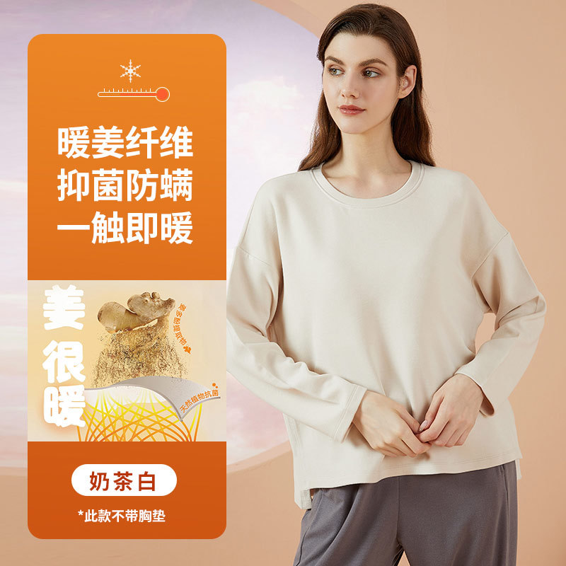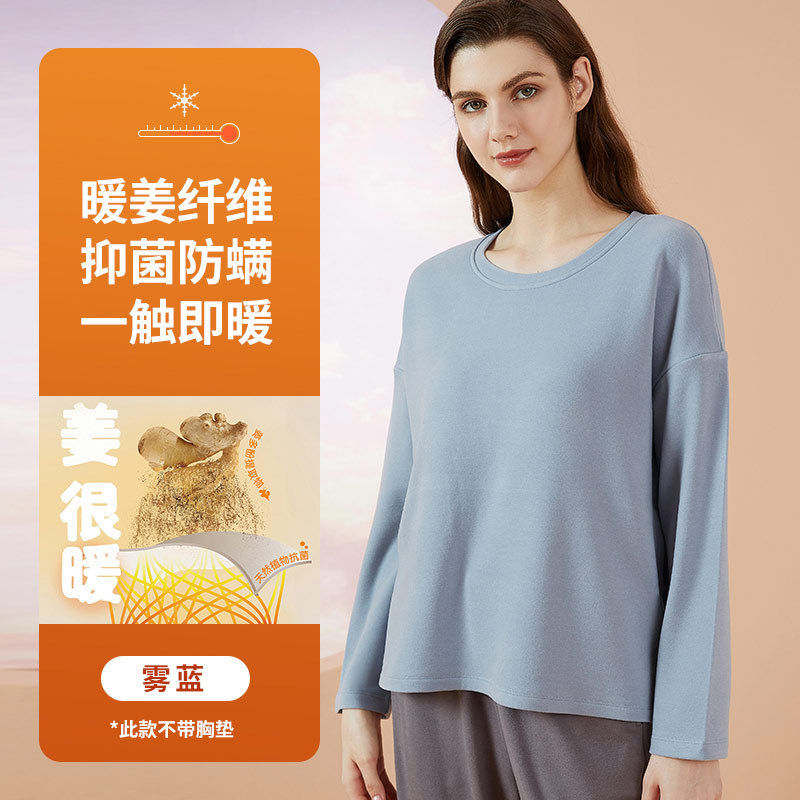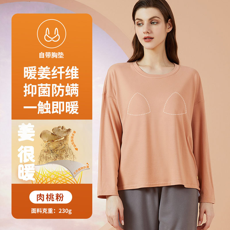 Главная страница > Оврио с нагрудными подушками пижамы для женщин тонкий круглый вырез с длинными рукавами костюм большого размера свободный, может носить простую домашнюю одежду на улице