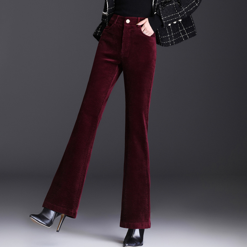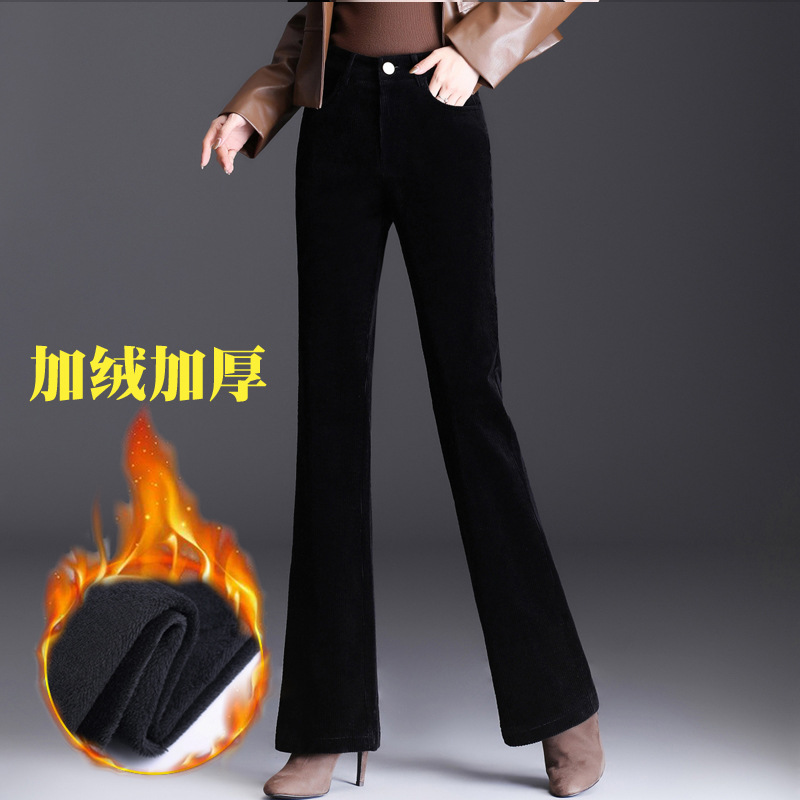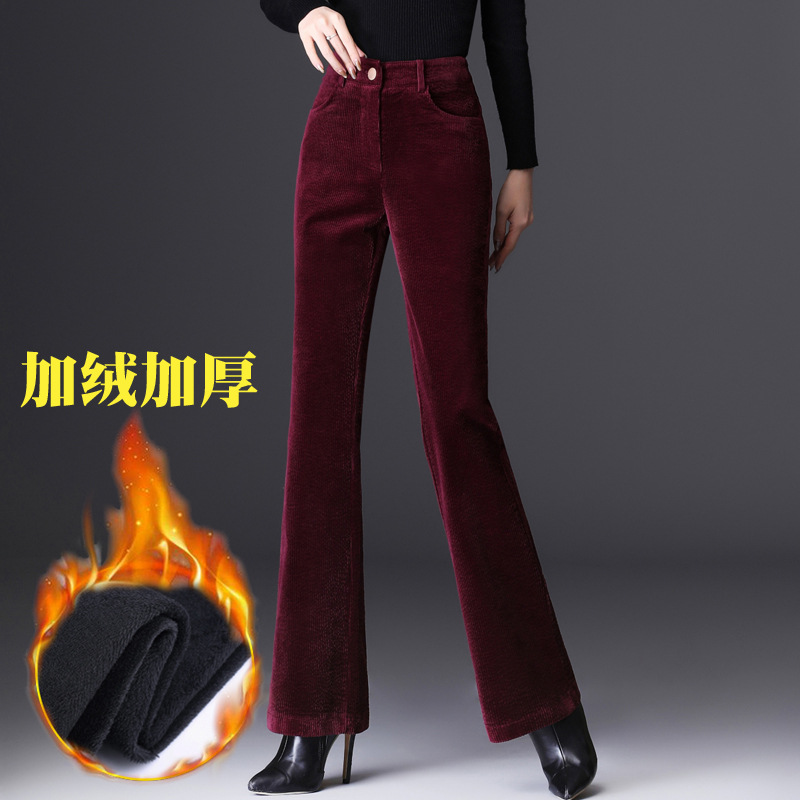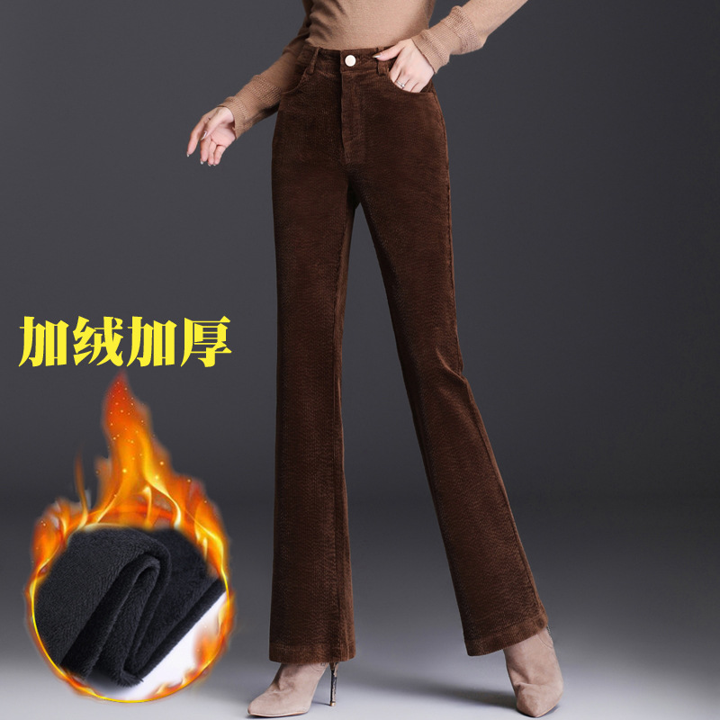 Главная страница > Зимние женские брюки с высокой талией из хлопка, слегка расклешенные повседневные брюки, флисовые утепленные вельветовые брюки, вельветовые брюки-клеш больших размеров.