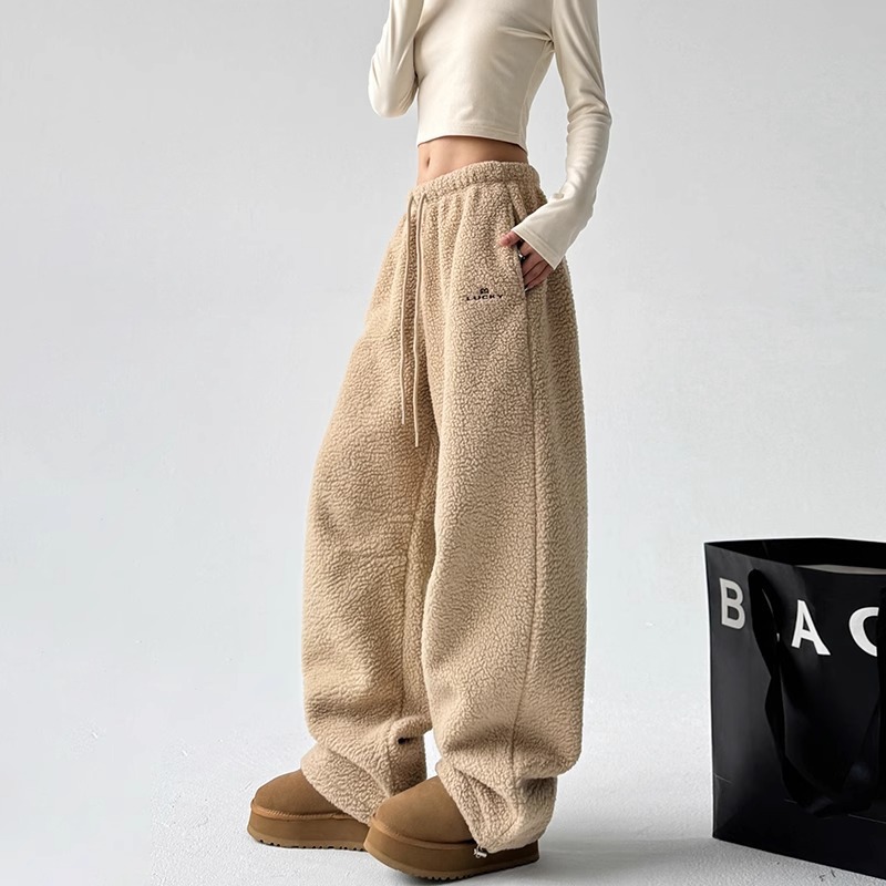 Главная страница > 2025 осень-зима новые свободные кашемировые повседневные брюки женские высокие талии и шнурки прямые брюки