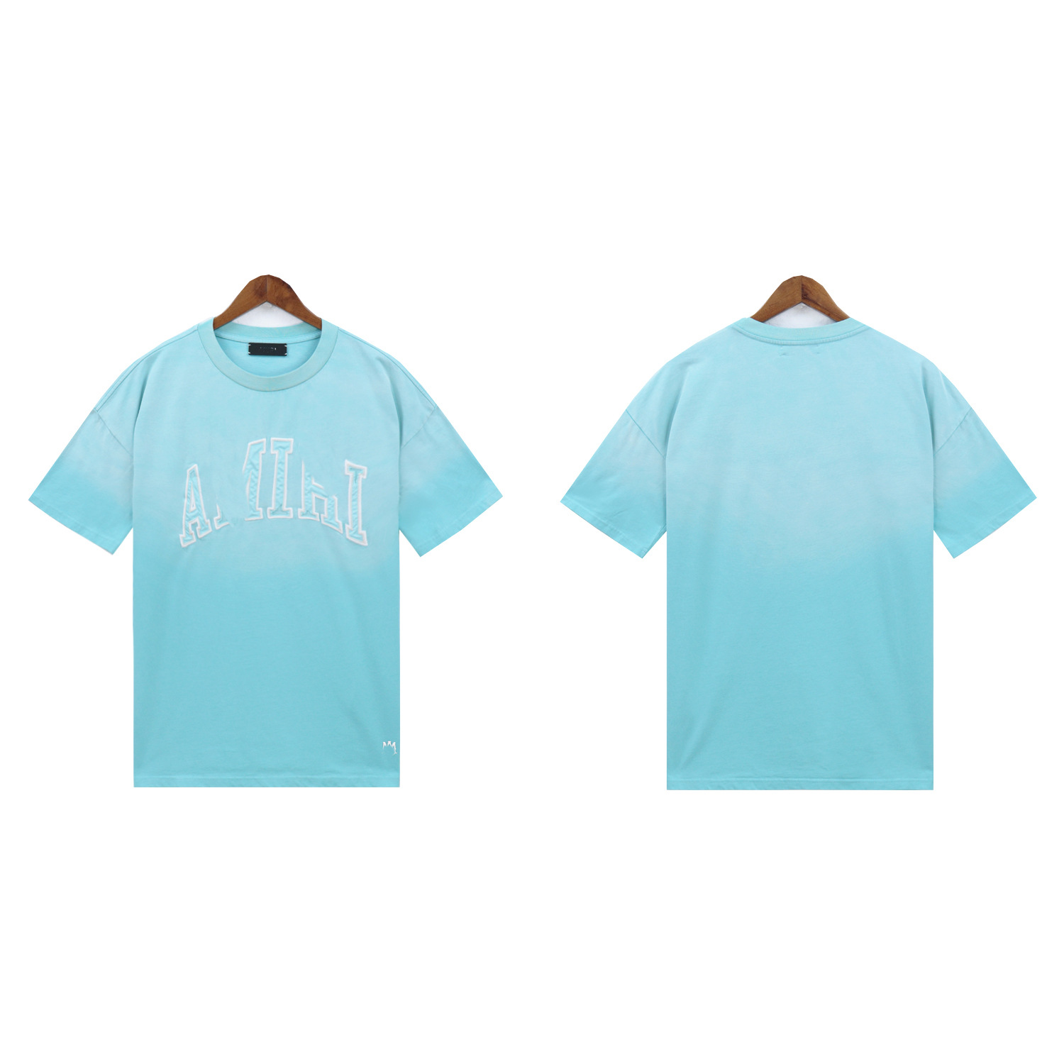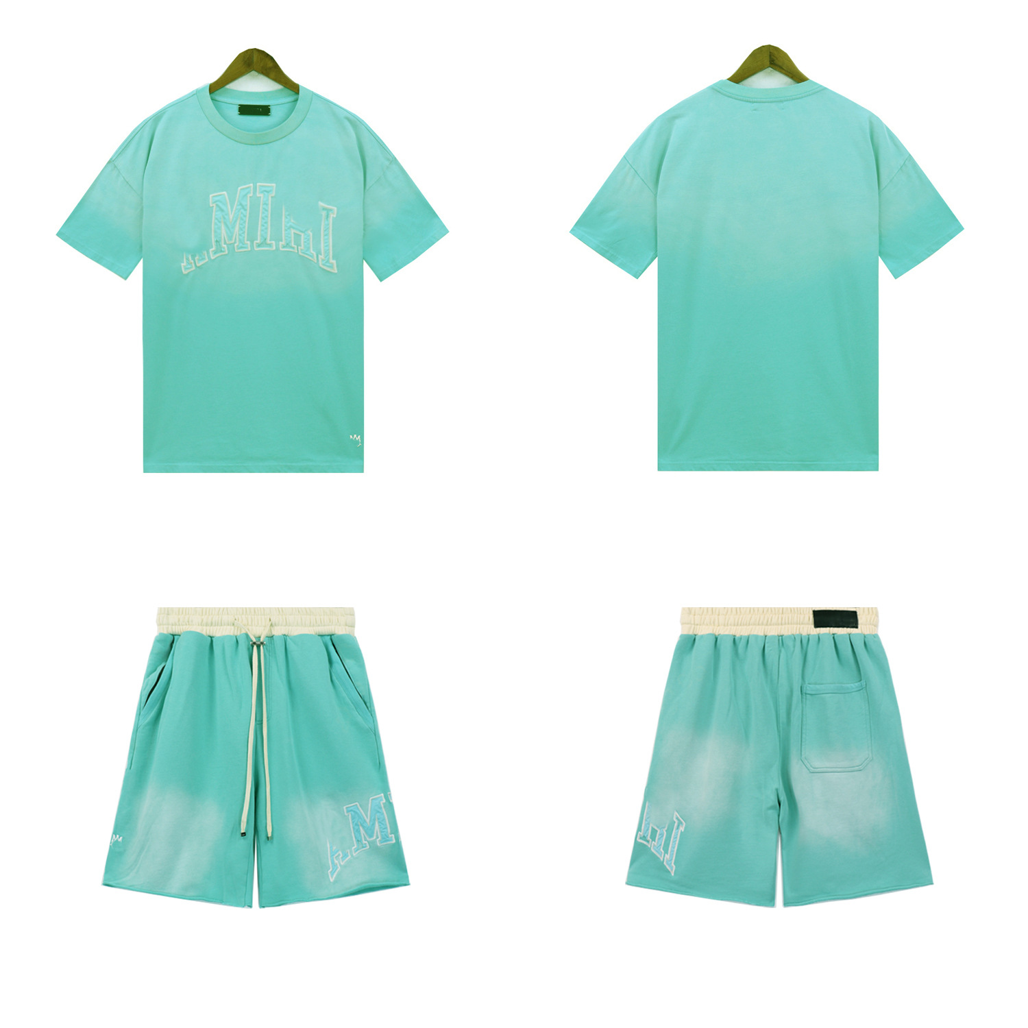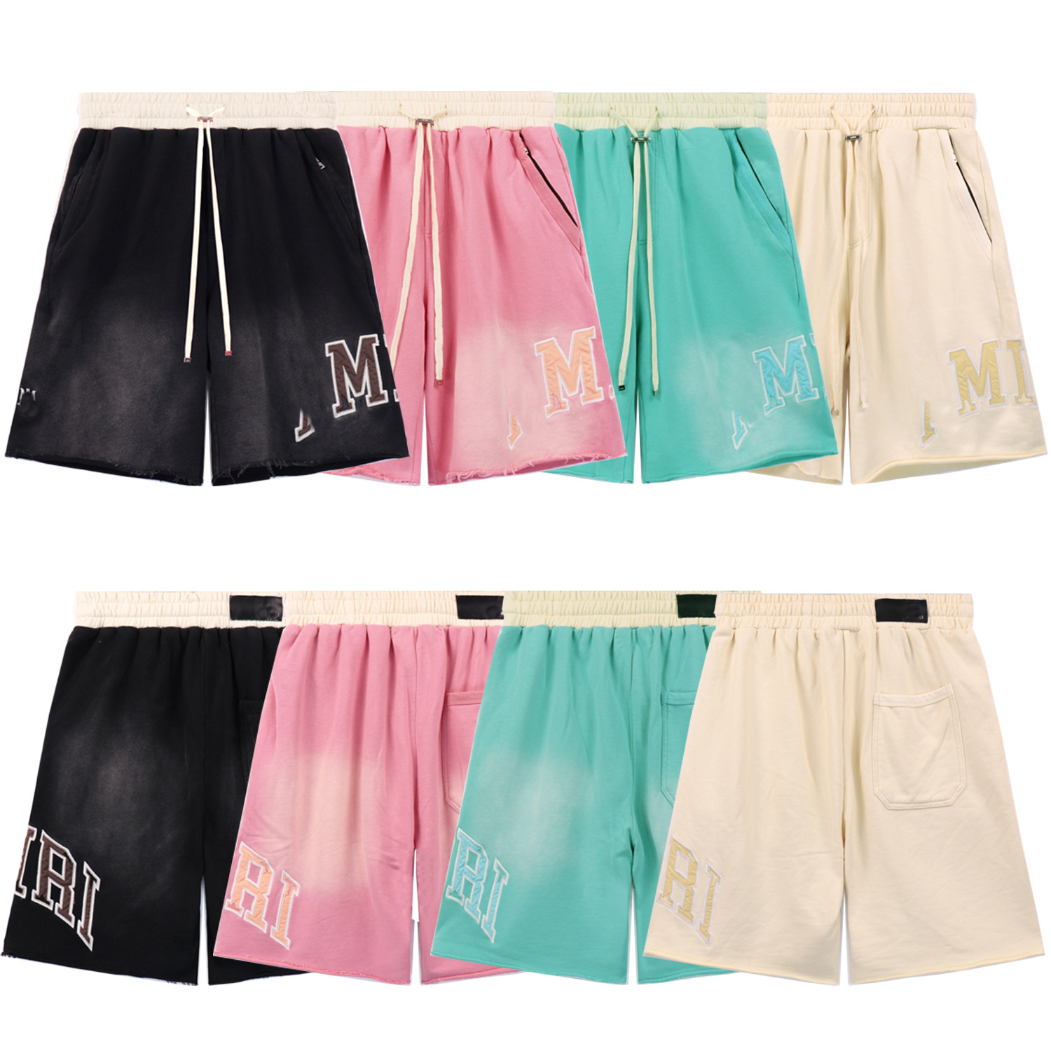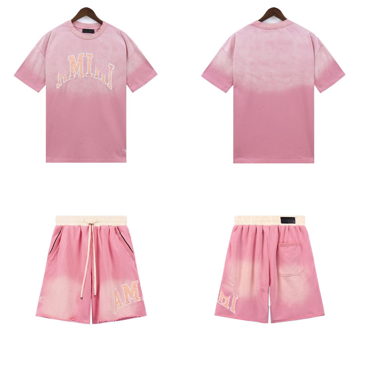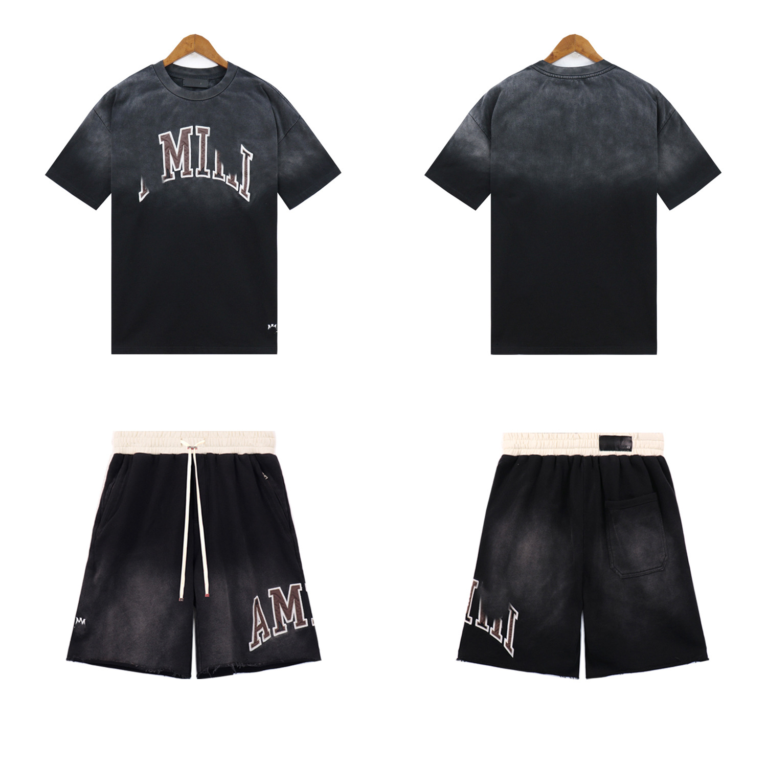 Костюм-футболка в американском стиле преппи AMIRI с нашивкой букв и вышивкой, потертые и потертые брюки с короткими рукавами, повседневные шорты для мужчин