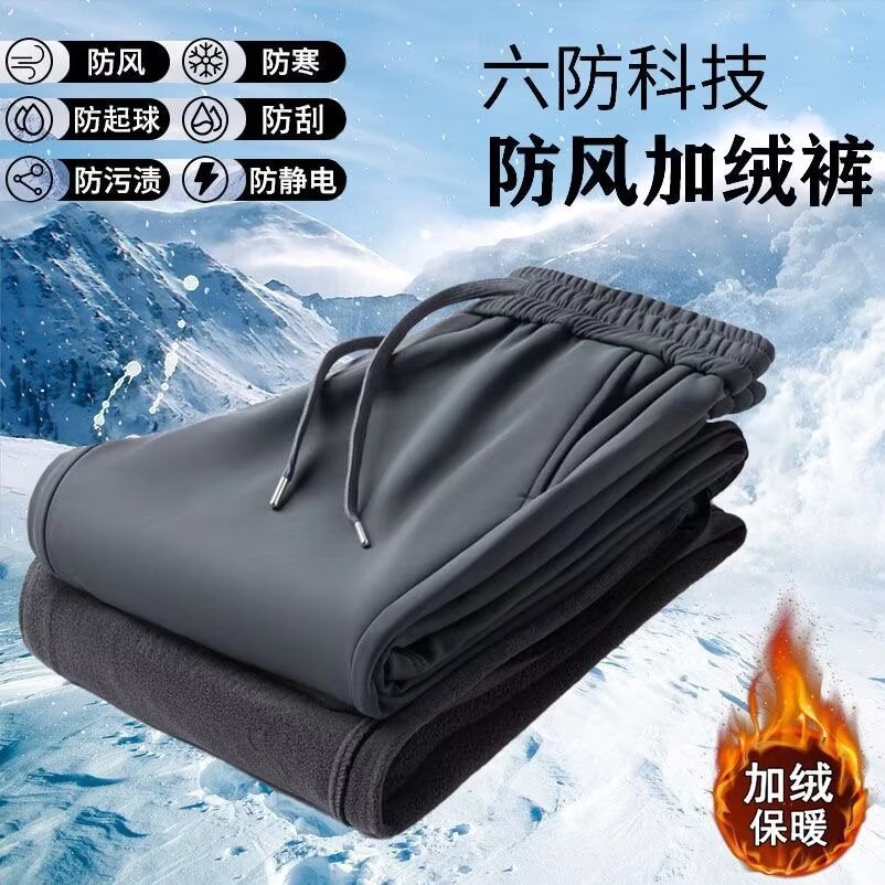 Главная страница > Мужские осенние и зимние плюшевые толстые шестизащитные брюки теплые ветрозащитные брюки свободные спортивные брюки большого размера