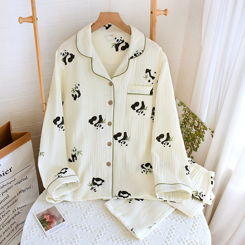 Главная страница > 2023 новая Хлопковая пижама из крепа, женский тонкий милый сладкий впитывающий пот Свободный кардиган с длинными рукавами, домашняя одежда, костюм