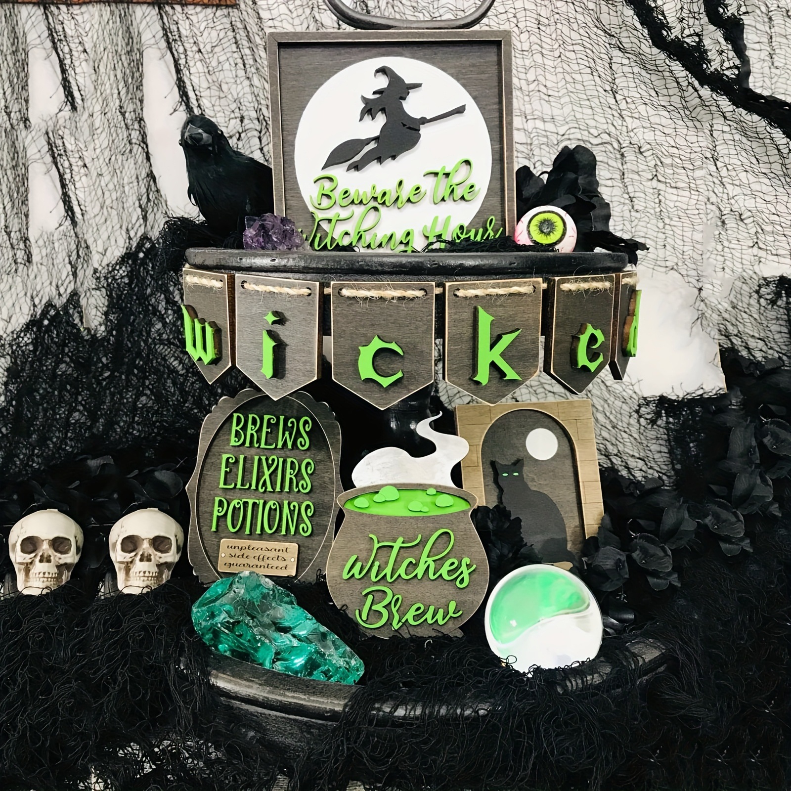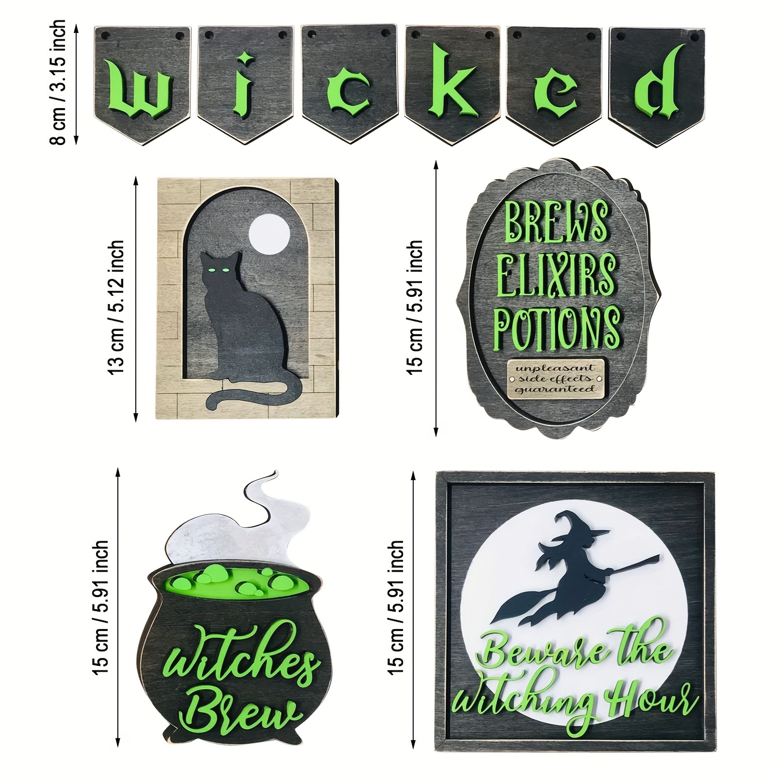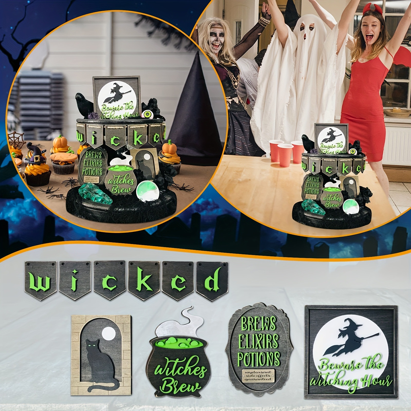 Главная страница > 10 шт., набор украшений для многослойного подноса на Хэллоуин, тыква, силуэт ведьмы, черный кот, осенний деревенский стиль, деревянная вывеска