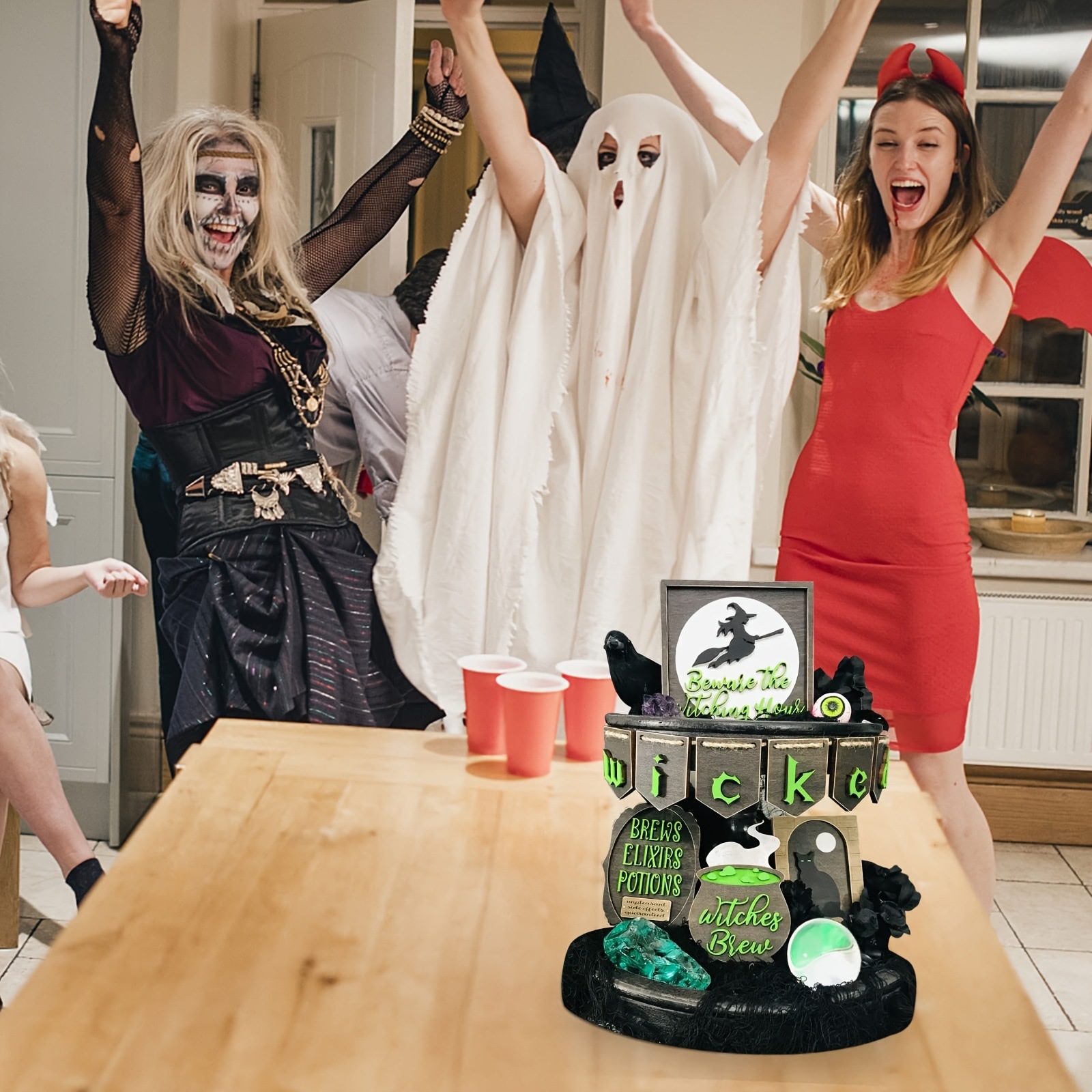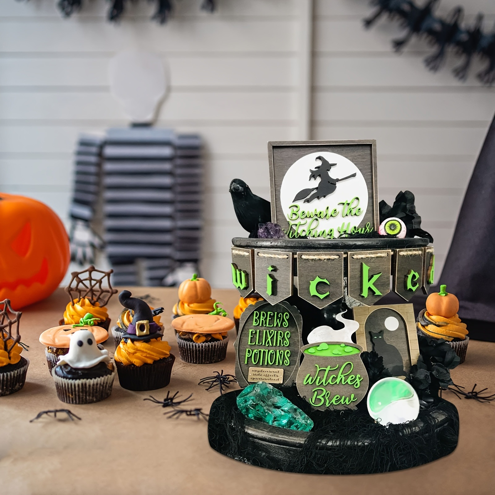 10 шт., набор украшений для многослойного подноса на Хэллоуин, тыква, силуэт ведьмы, черный кот, осенний деревенский стиль, деревянная вывеска