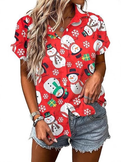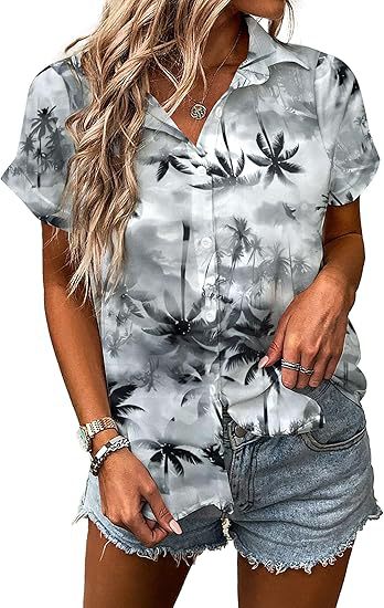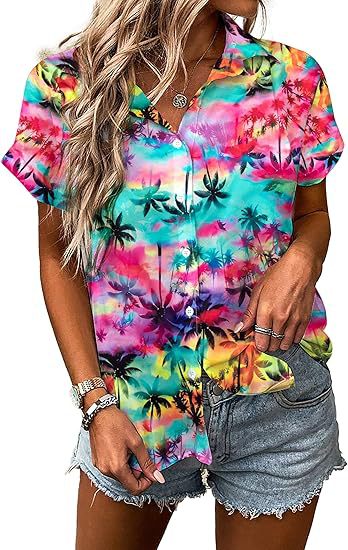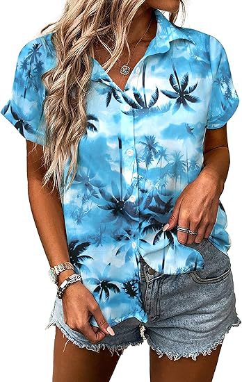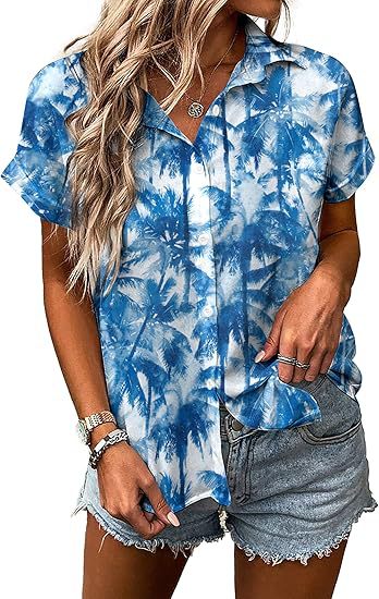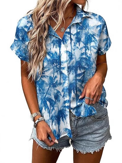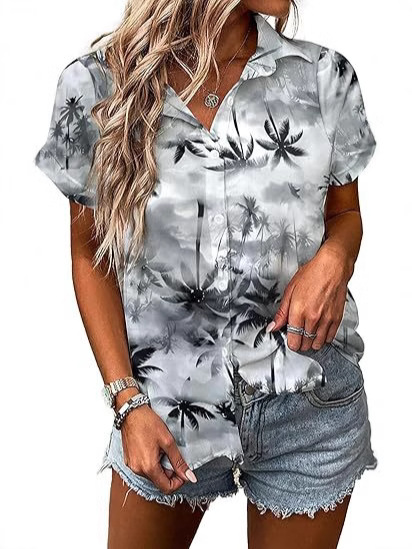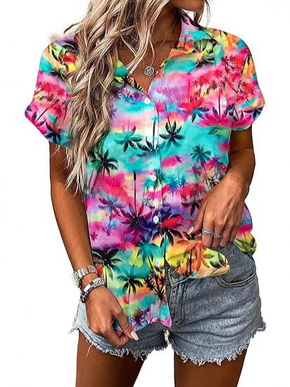 Главная страница > 2025 женская гавайская рубашка мягкая прохладная летняя футболка пляжный тропический принт V-образный блузка на пуговицах