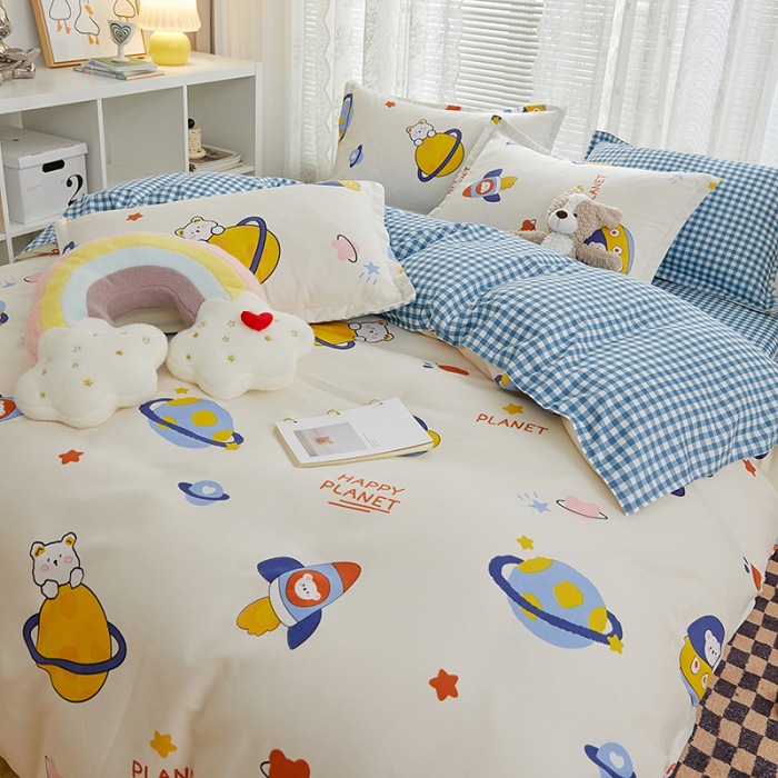 Главная страница > Свежий и простой утолщенный комплект постельного белья из четырех предметов, стиранный хлопок, студенческое общежитие, трехкомпонентный однотонный пододеяльник оптом.