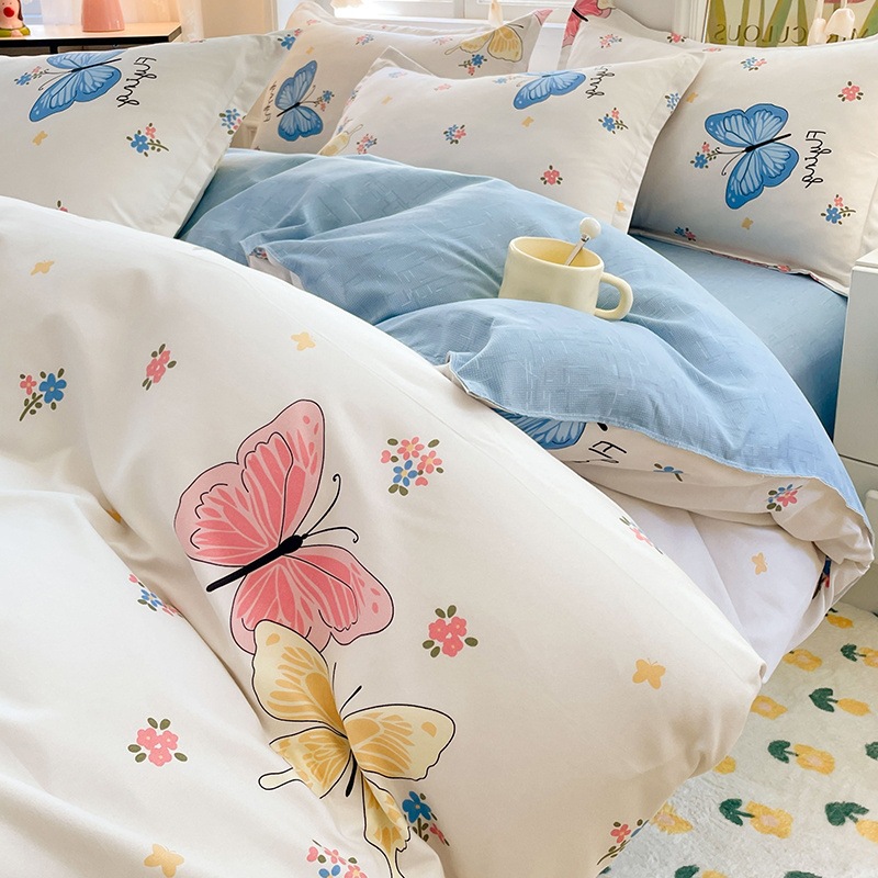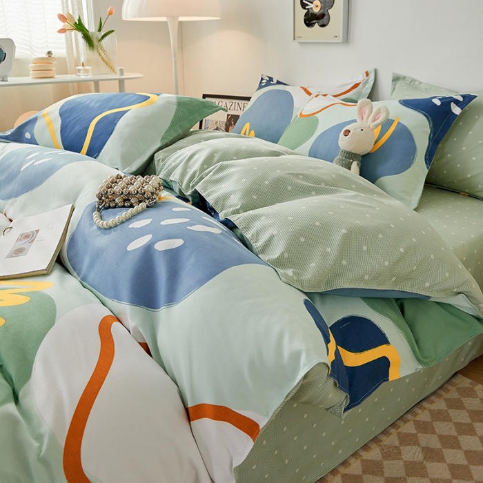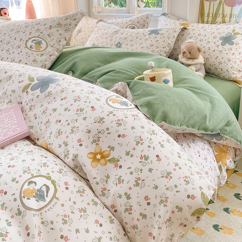 Свежий и простой утолщенный комплект постельного белья из четырех предметов, стиранный хлопок, студенческое общежитие, трехкомпонентный однотонный пододеяльник оптом.