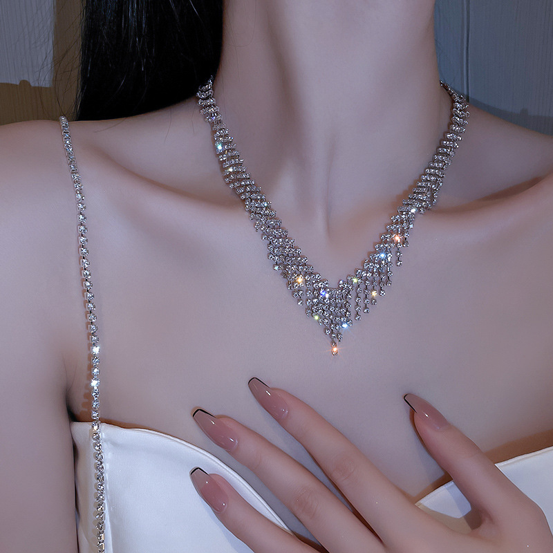 Главная страница > Европейские и американские стразы капельки овальные ожерелья мода высокого уровня ключицы цепи нишевые дизайн холодные ветры украшения оптом женщины