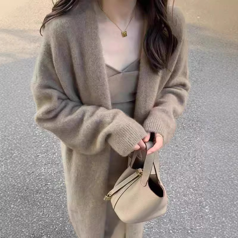 Главная страница > YUNSHU, новый свободный мягкий вязаный кардиган в корейском стиле для женщин на осень и зиму, повседневное пальто-свитер средней длины.