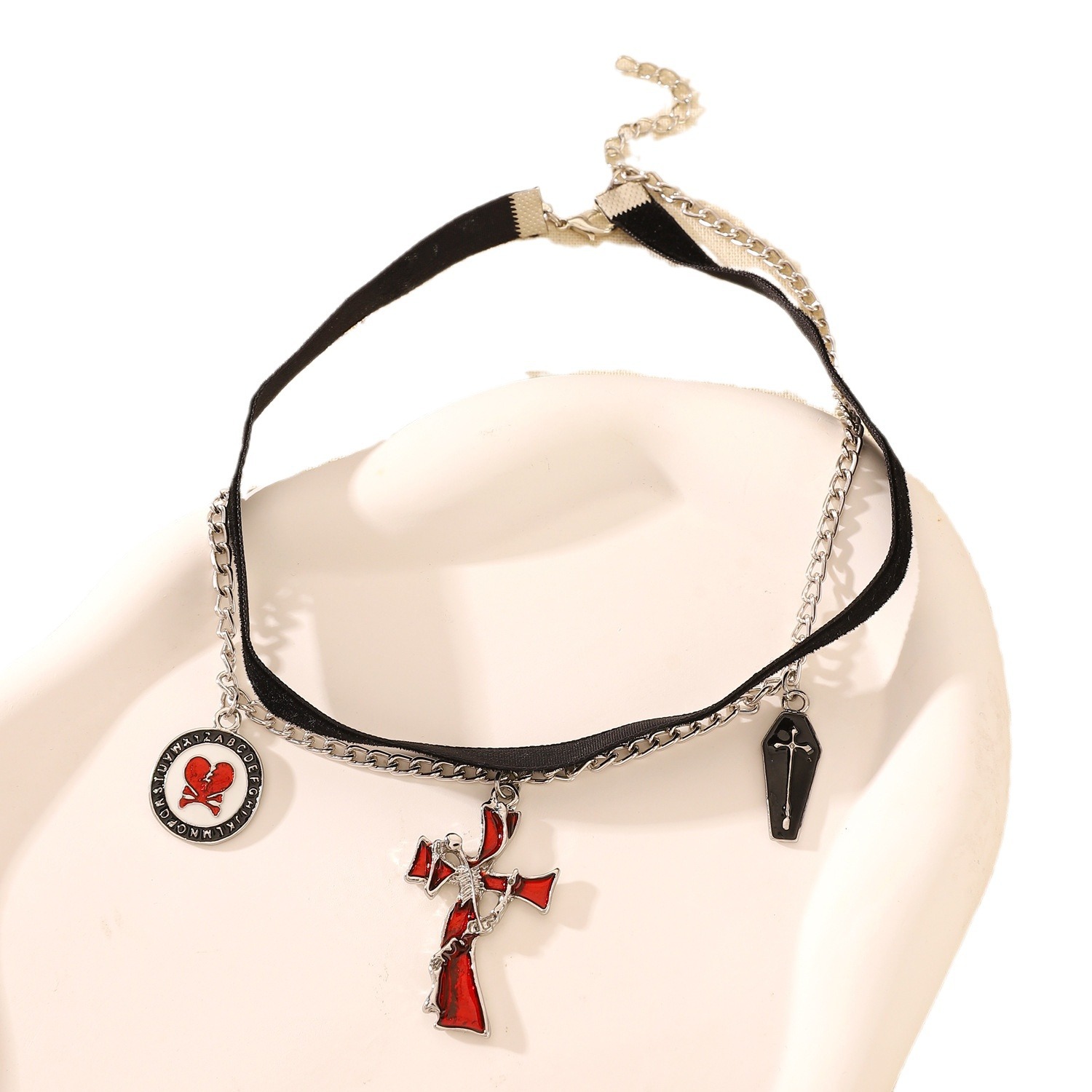 Главная страница > Ожерелье-чокер в готическом стиле с подвеской в виде кровавого черепа и креста, новинка на Хэллоуин, женская мода