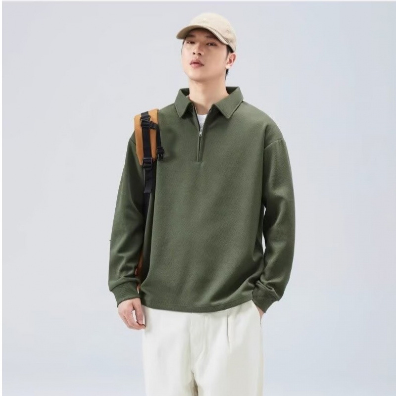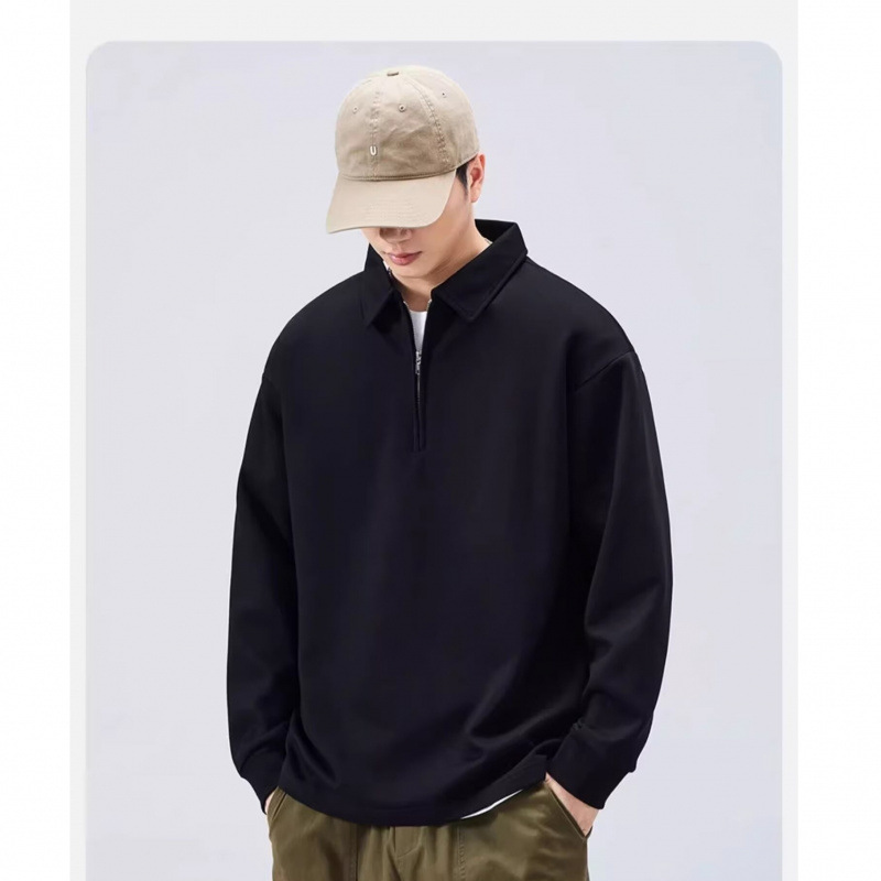 Главная страница > Полузастежка на молнии свитерская мужская весенняя и осенняя тенденция свободные лацканы одежда повседневная POLO воротник с длинными рукавами