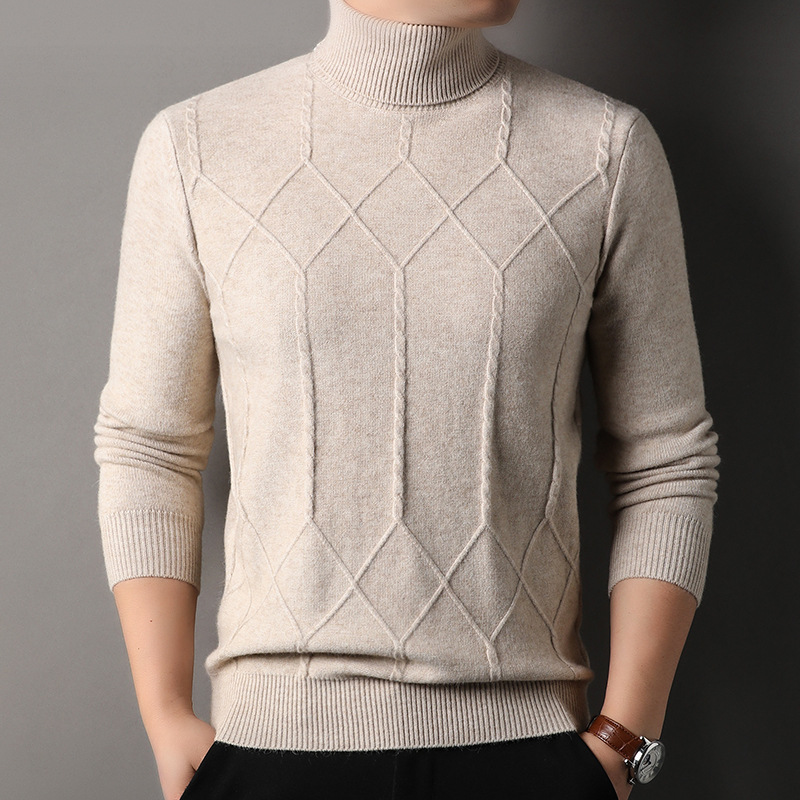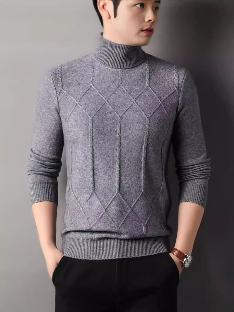 Главная страница > Мужской свитер с высоким воротом, утепленный для зимы, мягкий и приятный к коже, трикотажный топ с длинными рукавами, оптом.