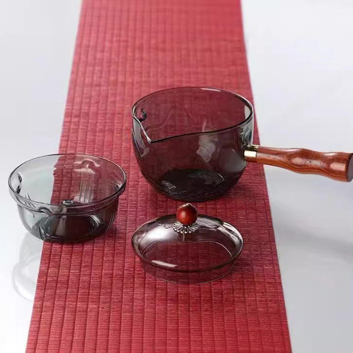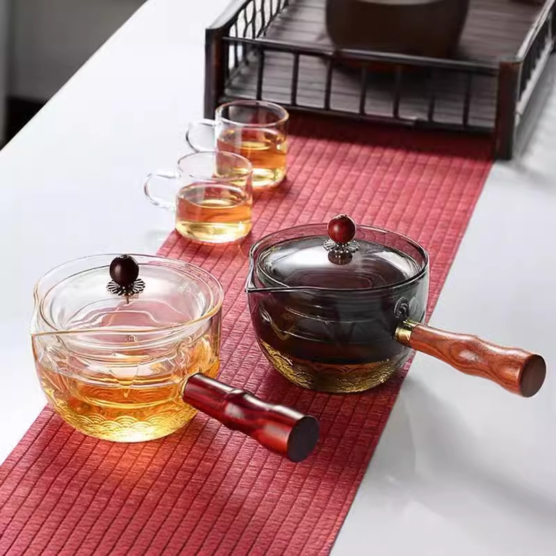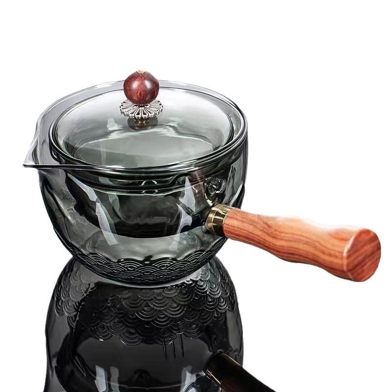 Высокотемпературная стойкость боросиликата боковая ручка вращающегося горшка для чайного отделения дымчатого серого прозрачного стеклянного горшка для чайника