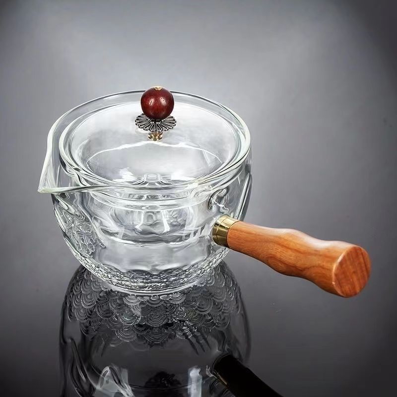 Главная страница > Высокотемпературная стойкость боросиликата боковая ручка вращающегося горшка для чайного отделения дымчатого серого прозрачного стеклянного горшка для чайника