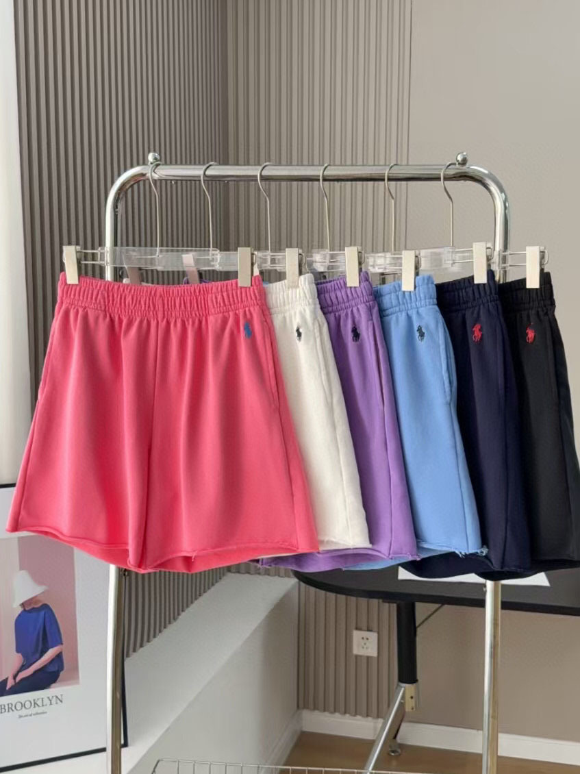 Главная страница > [Шорты в том же стиле RL Raff] Женские повседневные махровые шорты из стираного хлопка с вышивкой пони и закругленными краями