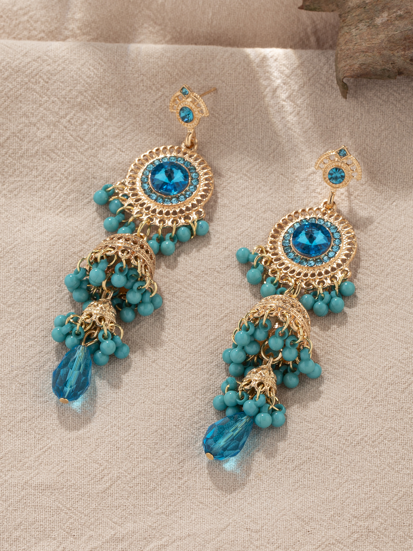 Главная страница > Модные индивидуальные серьги с микро-бриллиантами, Таиландские Ретро женские длинные роскошные имитационные серьги с кисточками и большим камнем