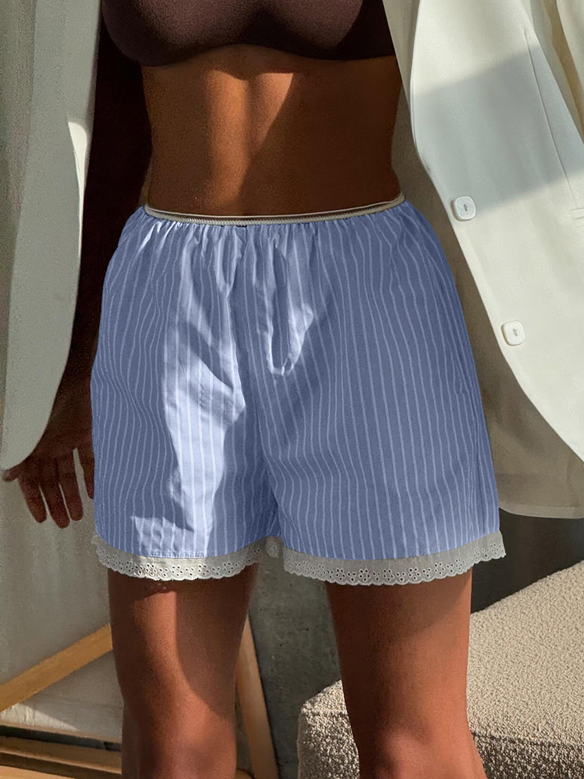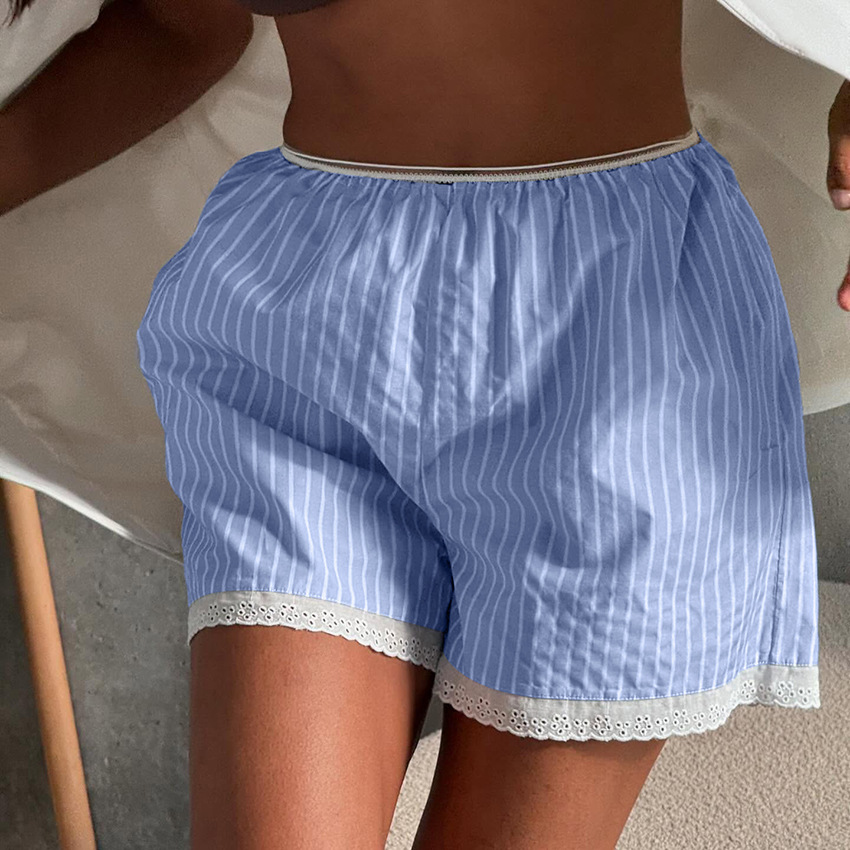 Главная страница > 2025 новых летних стильных кружевных полосатых свободных шорт для женщин с дизайном и элегантным повседневным европейско-американским кросс-бордерным стилем для работы.
