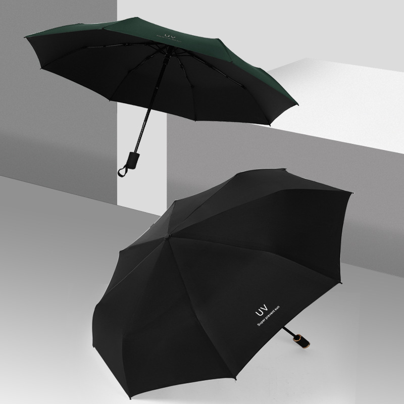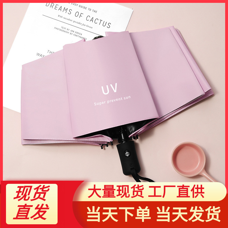 Зонт напечатан логотип Автоматический складной зонт Мужские и женские черный клей Анти-УФ небольшой свежий утолщенный двойной-использовать зонт для солнечного и дождя