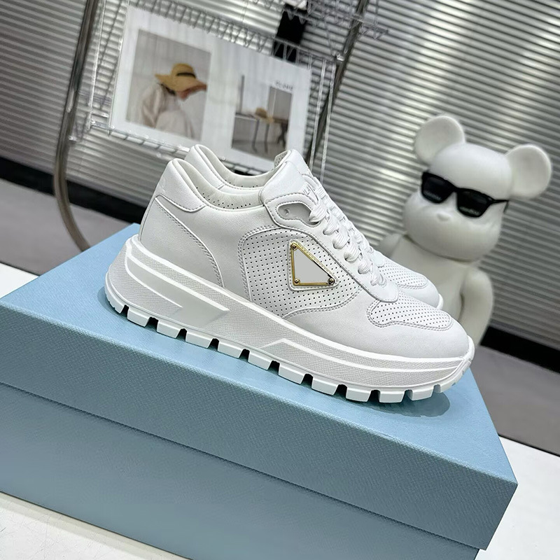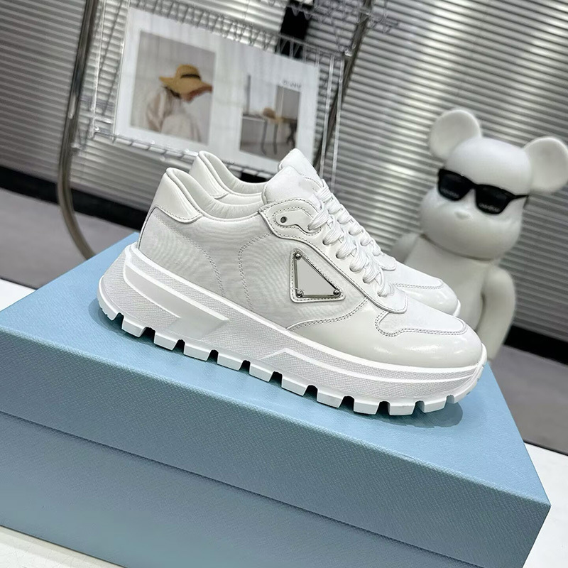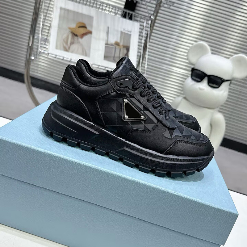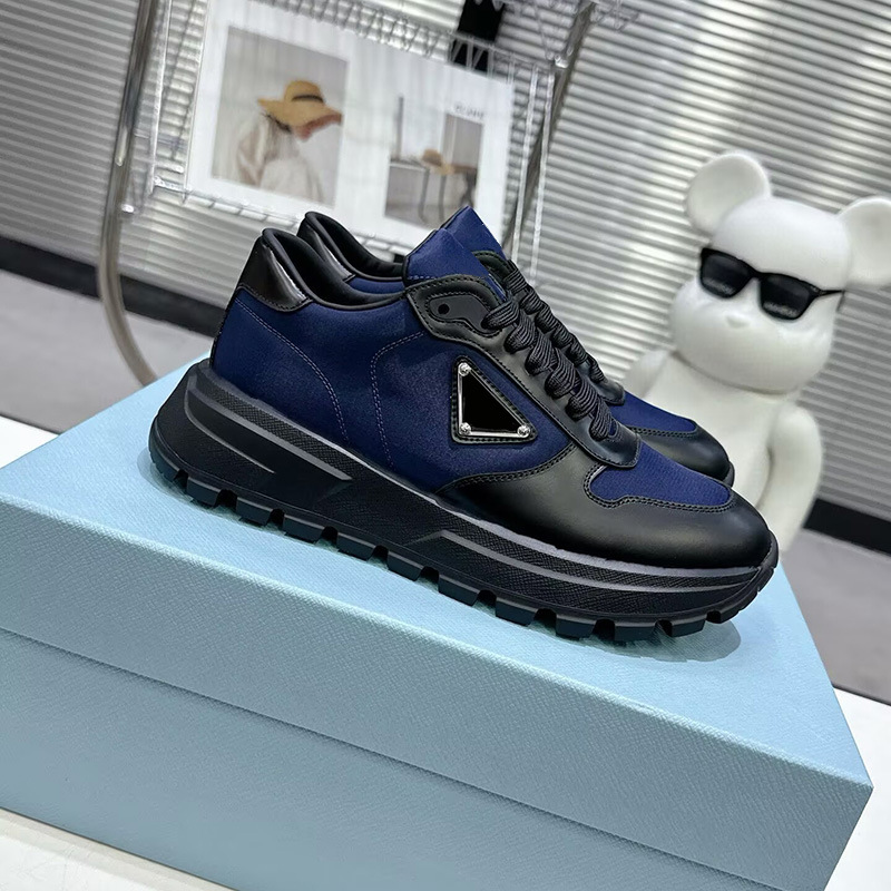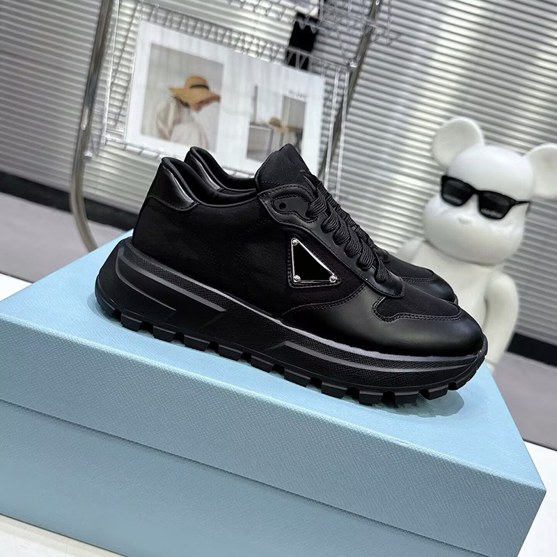В наличии новая спортивная обувь марки P с треугольным логотипом, повседневная мужская обувь из натуральной кожи на шнуровке с низким верхом и толстой подошвой для трансграничной торговли.