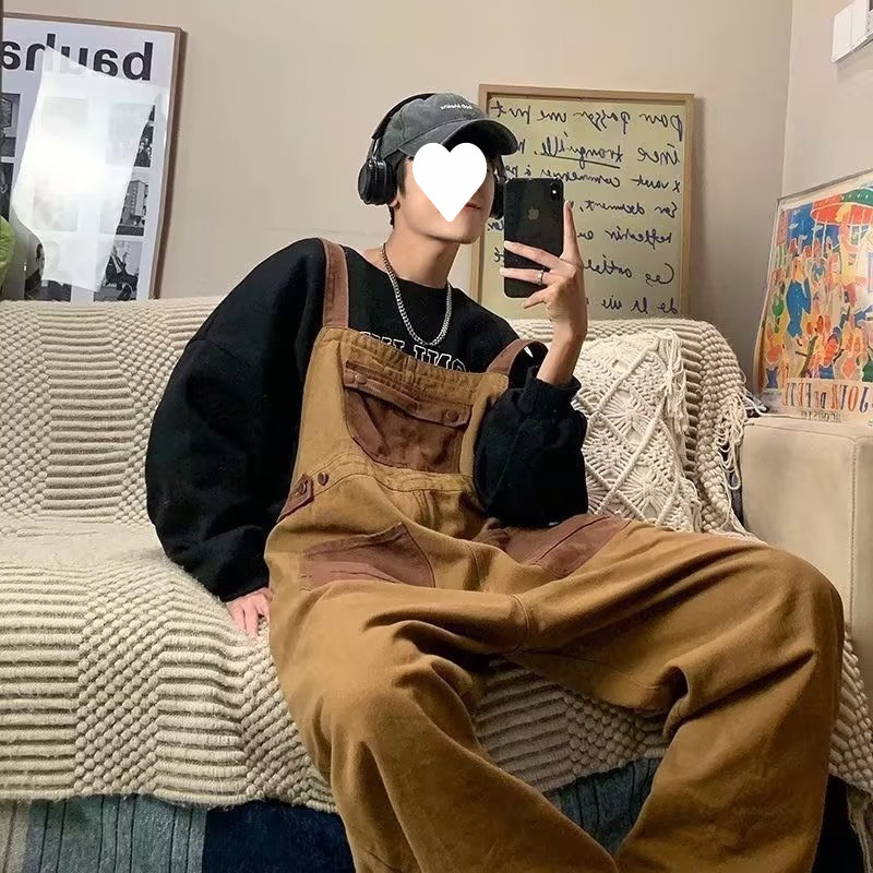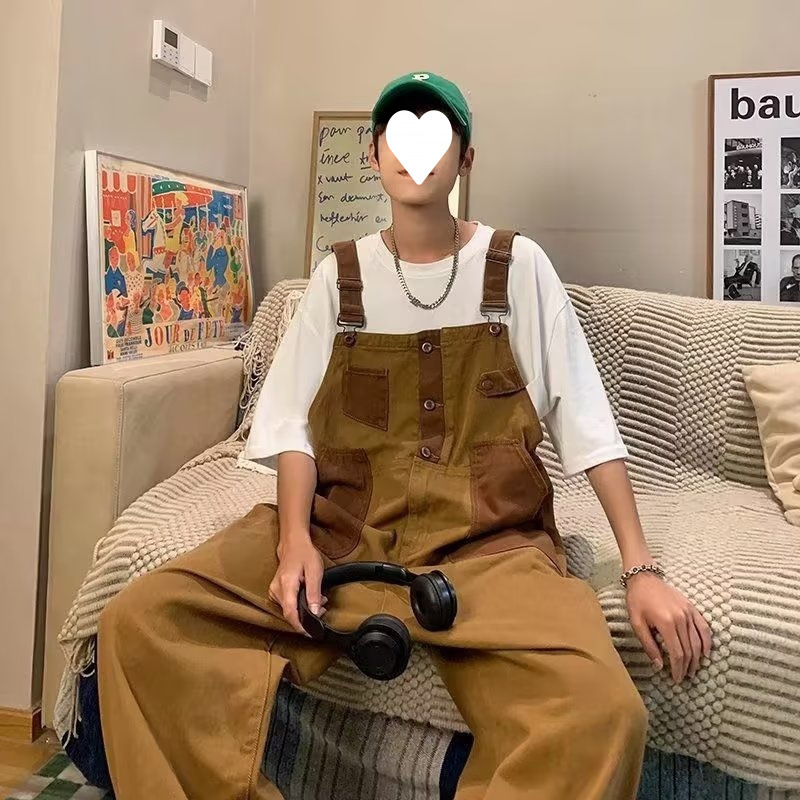 Главная страница > Коричневый комбинезон, мужской летний тонкий американский ретро-рабочая одежда, комбинезон, свободные повседневные дизайнерские нишевые брюки
