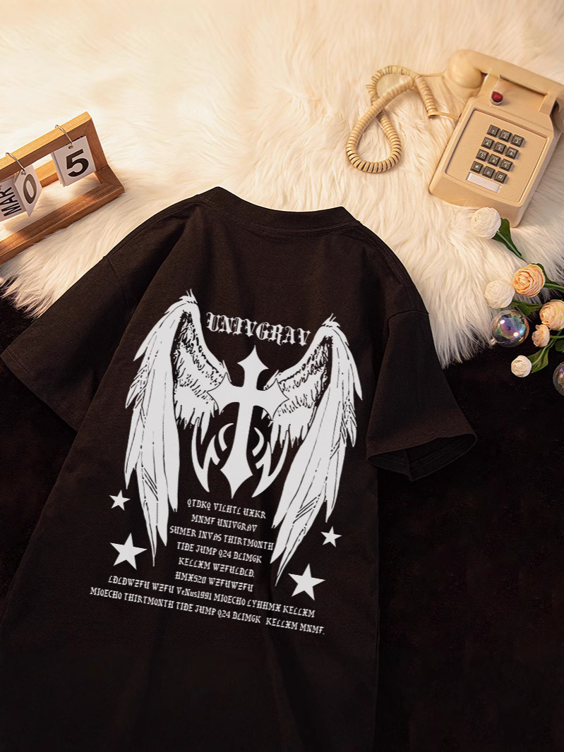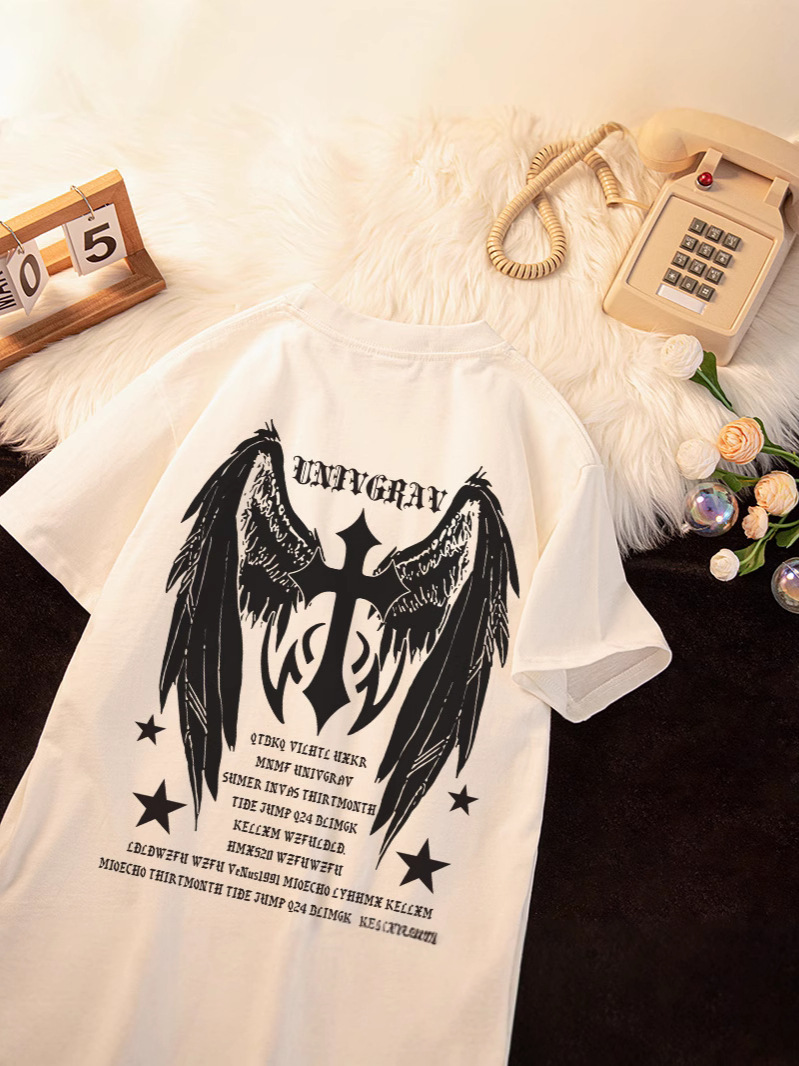 Главная страница > Chao Brand с короткими рукавами Высокий уличный крылья крест с короткими рукавами футболка мужские Rs новый европейский и американский свободный круглый воротник