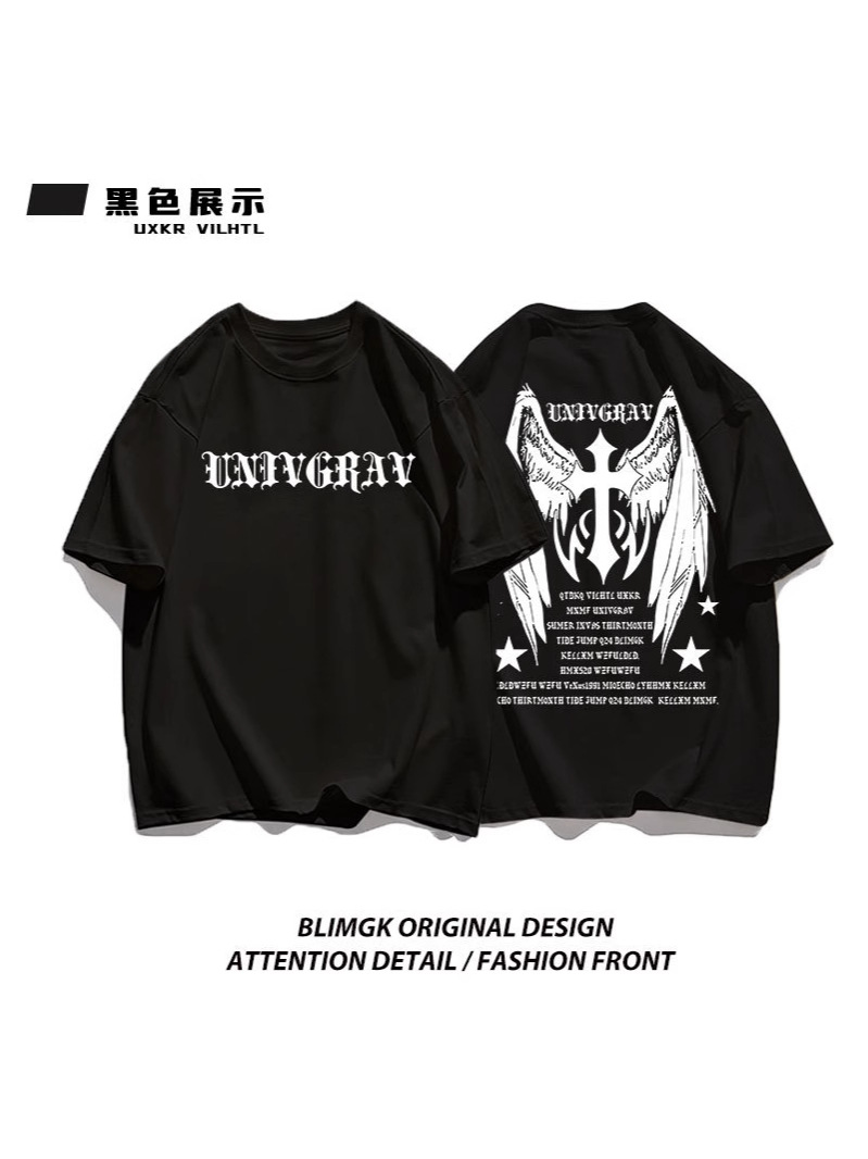 Chao Brand с короткими рукавами Высокий уличный крылья крест с короткими рукавами футболка мужские Rs новый европейский и американский свободный круглый воротник