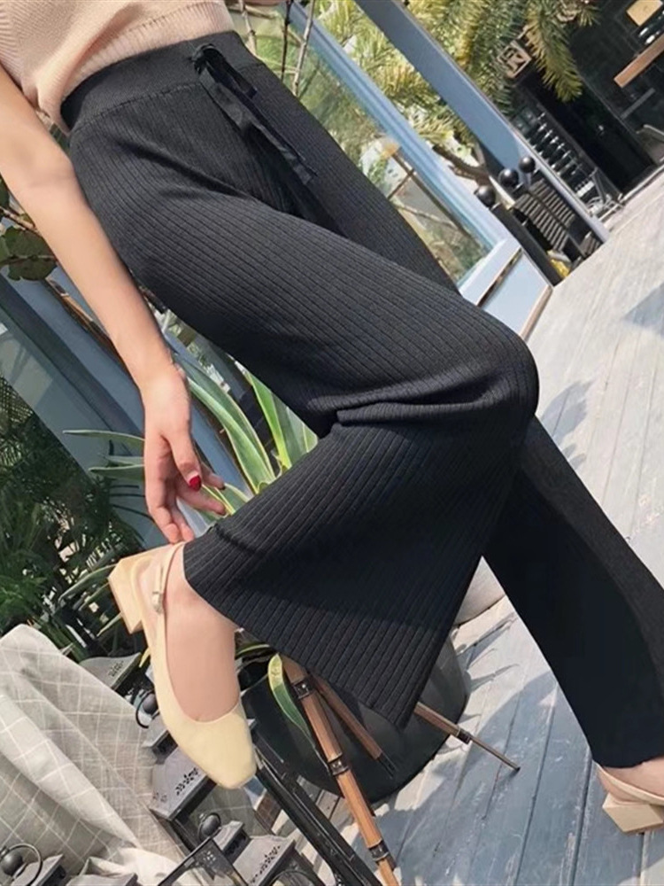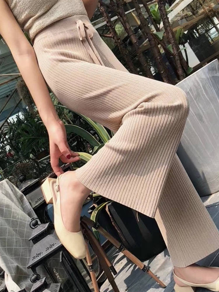 Главная страница > Женские широкие брюки из плотной трикотажной ткани, осень 2025, высокая талия, прямой крой, длинные, шикарные, свободные, универсальные, повседневные.