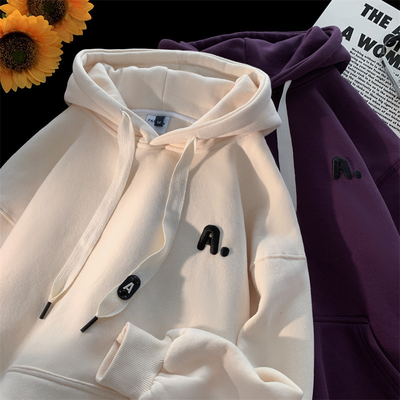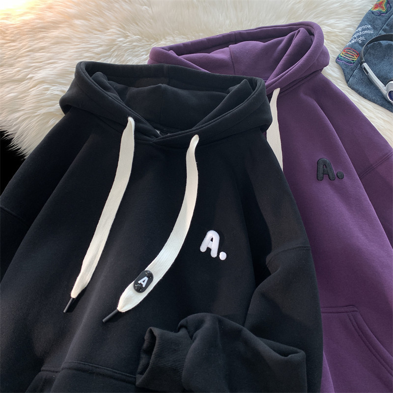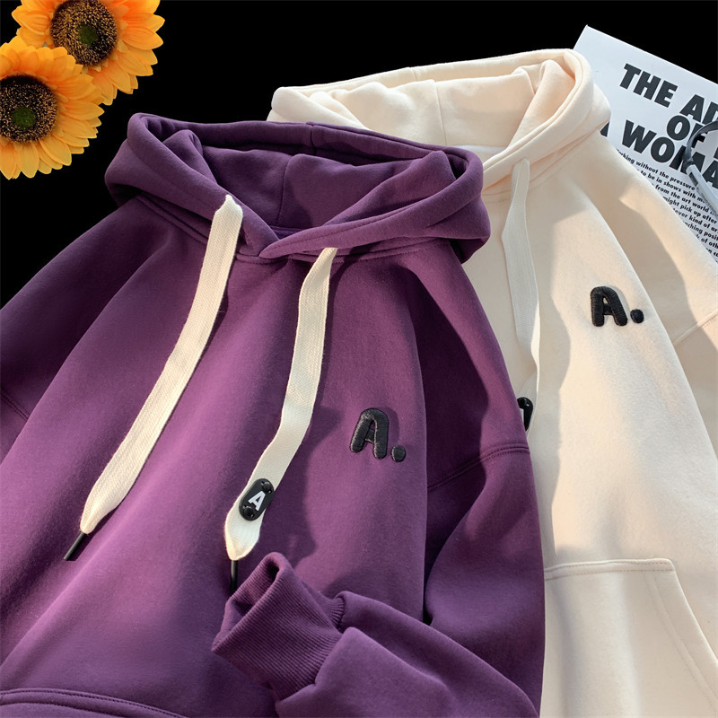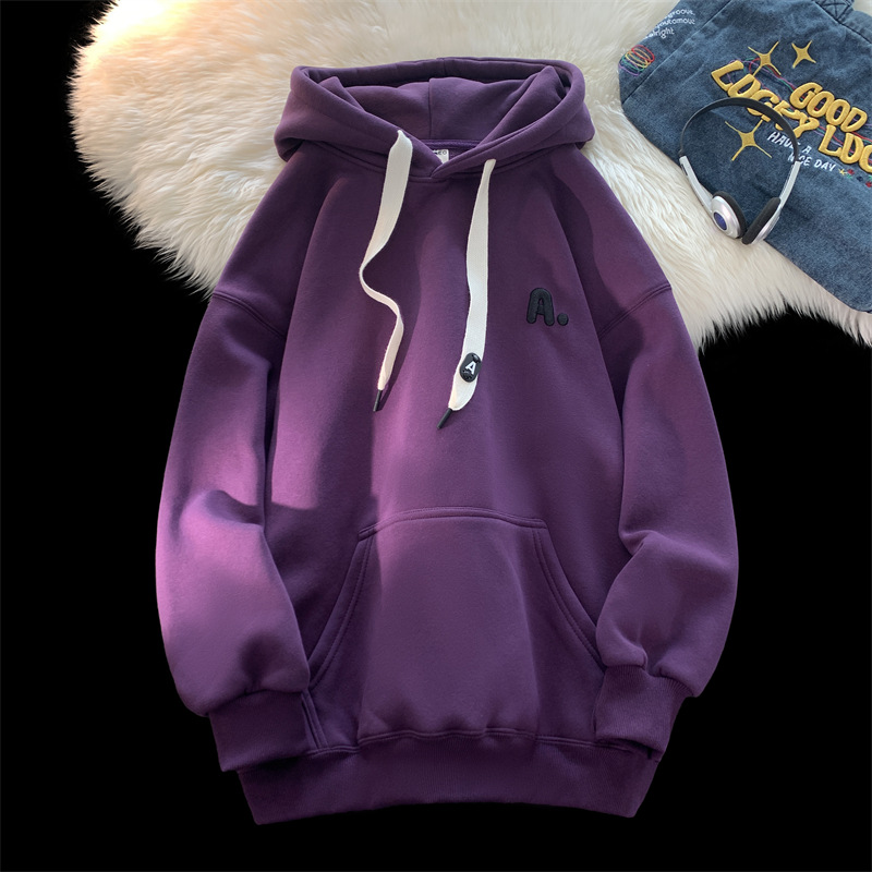Главная страница > Фиолетовый свитер мужской с капюшоном алфавит осенний американский вес 400 г тяжелый вес высокий грамм тяжелый пиджак весной и осенью приливная одежда