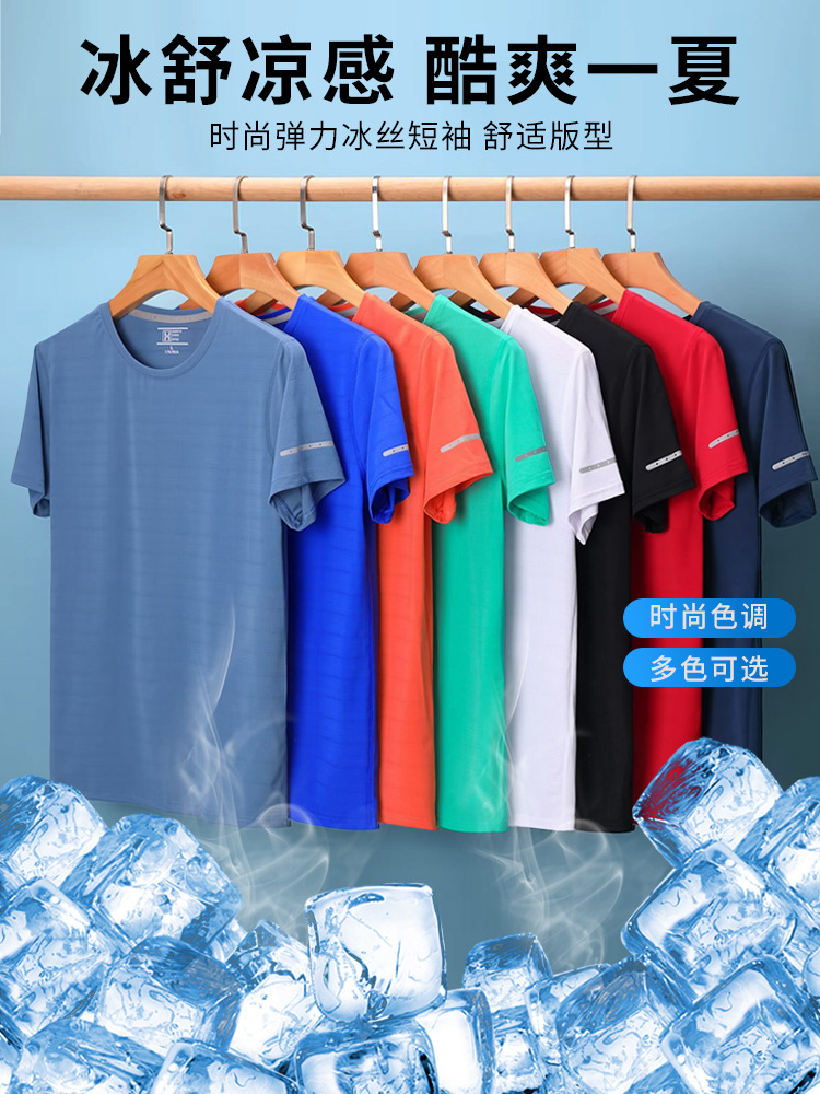 Главная страница > Быстросохнущая футболка из ледяного шелка с круглым вырезом, летняя рекламная рубашка с короткими рукавами, футболка для мероприятий, мужская одежда с половиной рукавов, рабочая одежда оптом