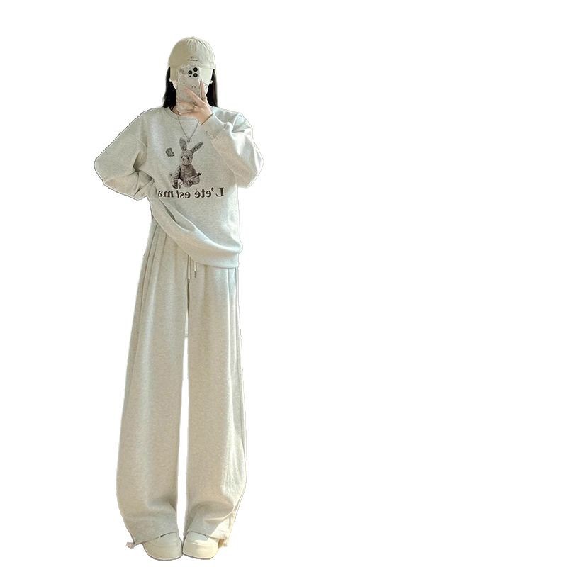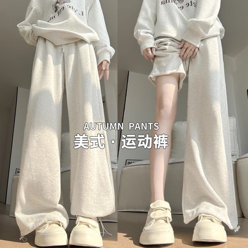 Главная страница > Белые серые американские спортивные брюки женская весна осень 2025 новые свободные прямые повседневные брюки маленькие широкие брюки