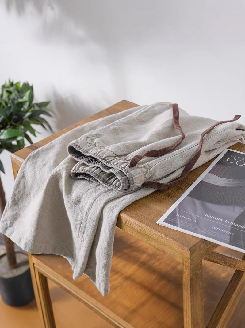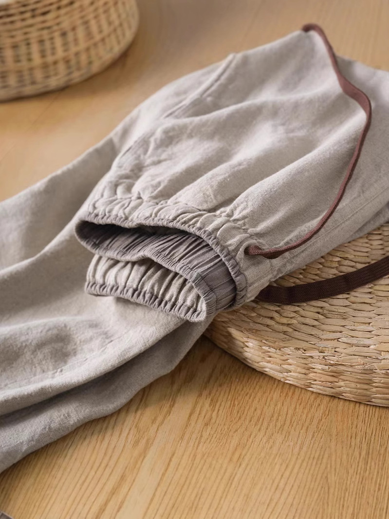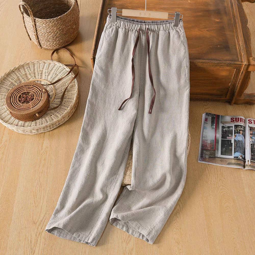Женские прямые брюки из конопли на осень 2025 года: хит продаж, с эластичным поясом, на шнурке, в стиле колор-блок, драпированные, повседневные, длинные