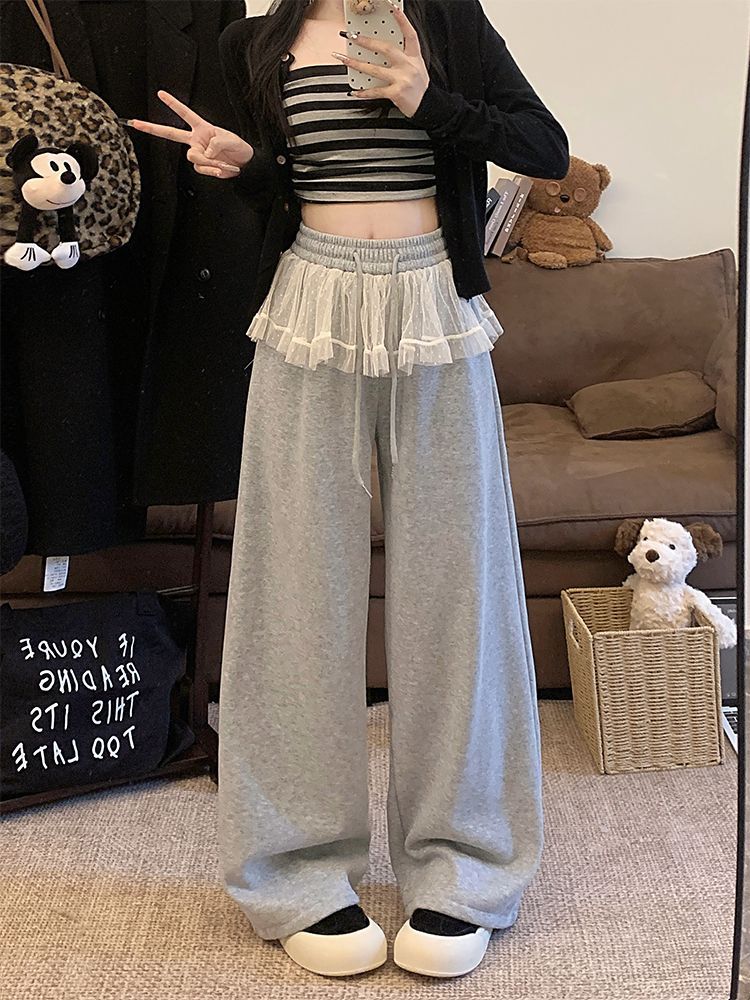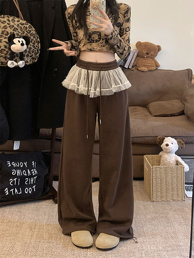 Дизайнерские кружевные сшитые штаны повседневные брюки женские зимние черные высокие талии