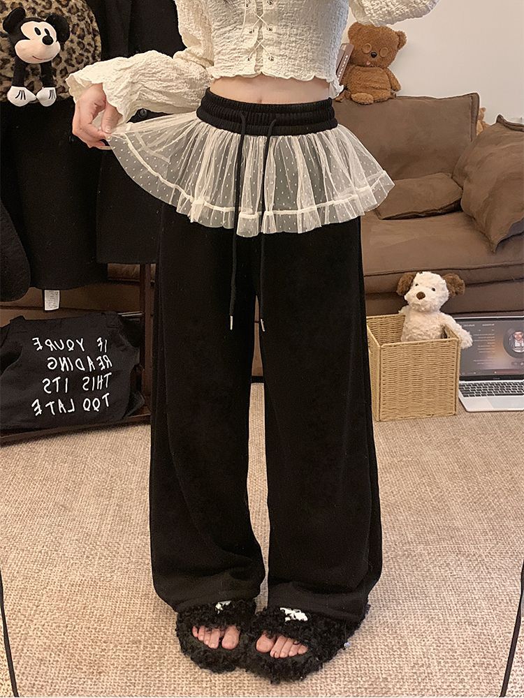 Главная страница > Дизайнерские кружевные сшитые штаны повседневные брюки женские зимние черные высокие талии