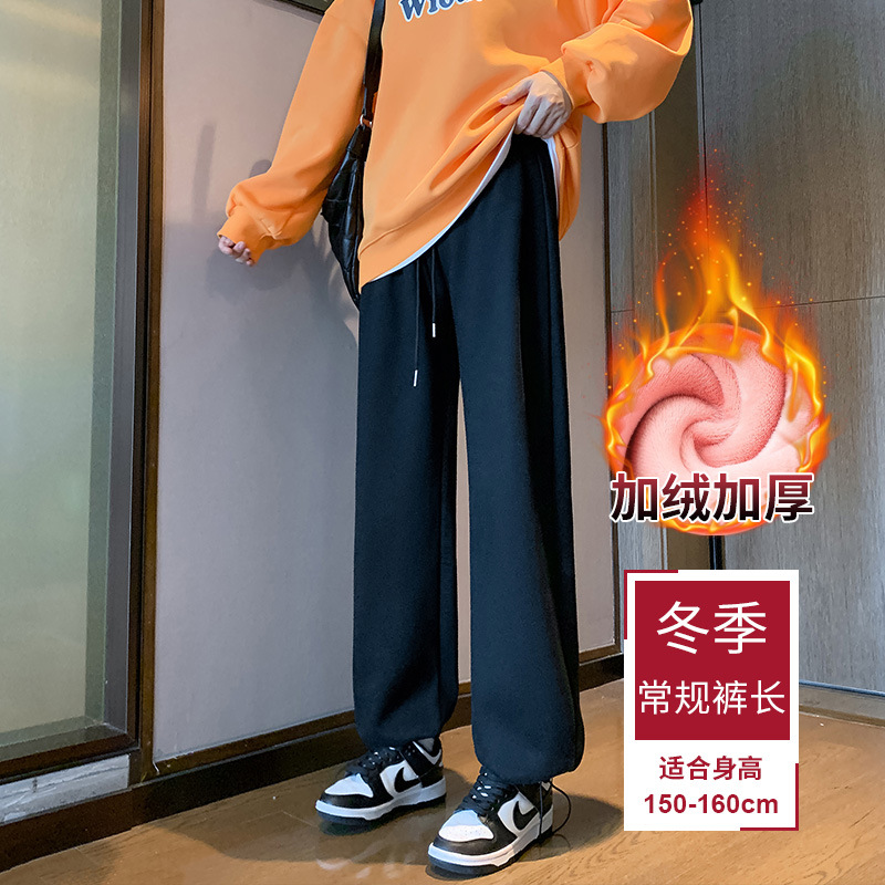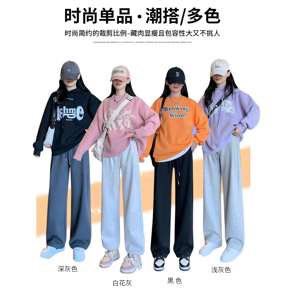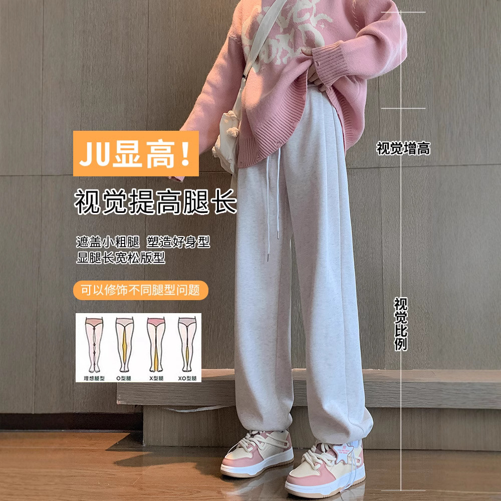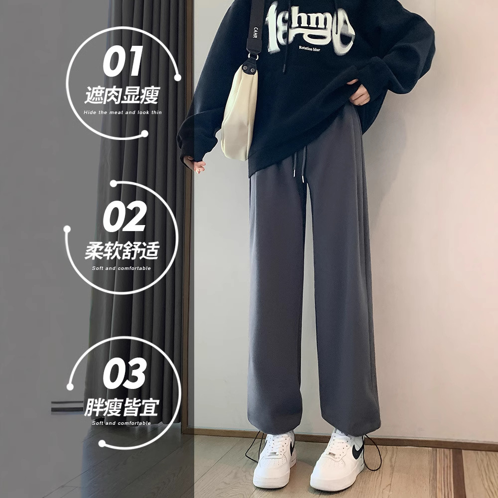 Главная страница > Спортивные брюки женские осень-зима 2024 новый стиль с высокой талией повседневные свободные прямые американские бархатные широкие ноги белые серые брюки