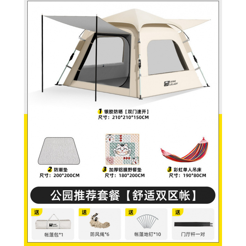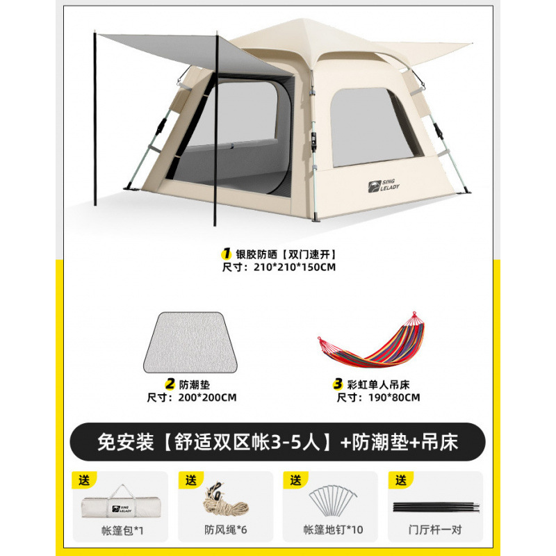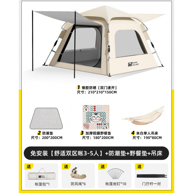3-5 человек [двухзонная палатка Shuju · установка не требуется] + влагостойкий коврик + коврик для пикника + гамак!