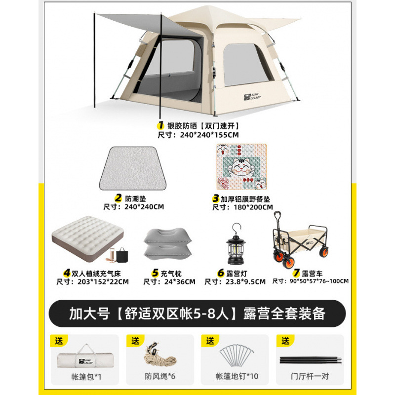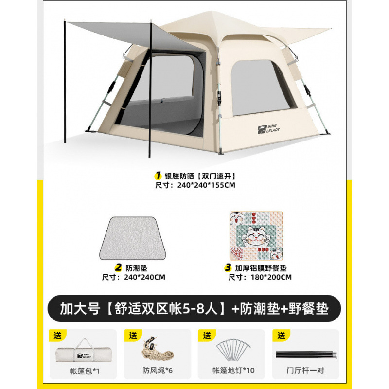 5-8 человек [двухзонная палатка Shuju·очень большой размер] + влагостойкий коврик + коврик для пикника (очень толстый кот 7 мм)!
