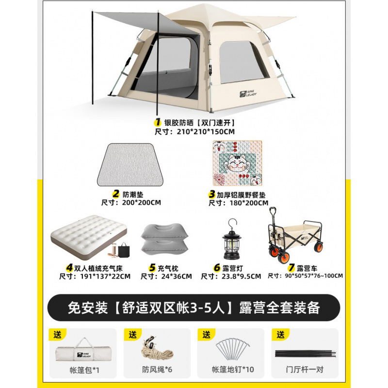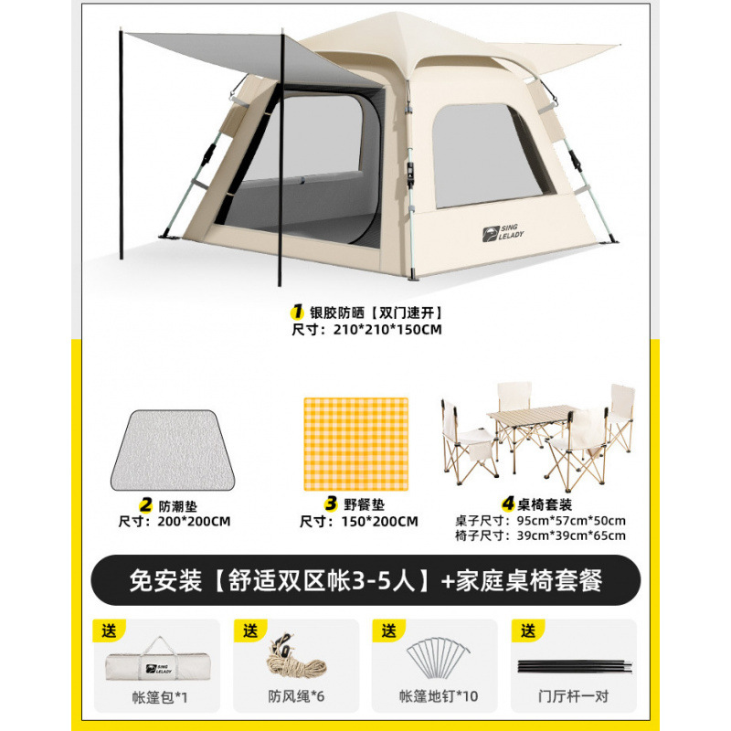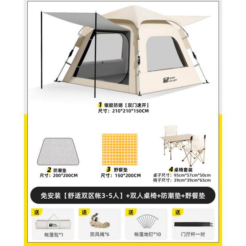 3-5 человек [двухзонная палатка Shuju · установка не требуется] + двойной стол и стулья + влагостойкий коврик + коврик для пикника!