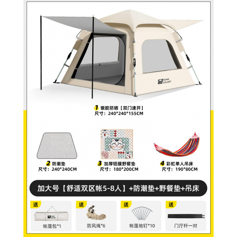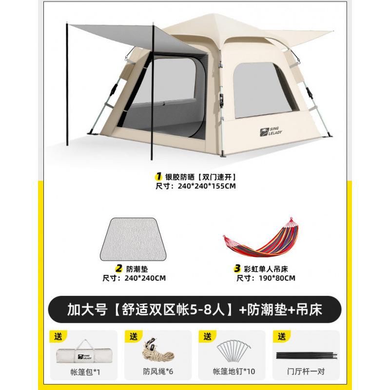 5-8 человек [двухзонная палатка Shuju·очень большой размер] + влагонепроницаемый коврик + коврик для пикника + гамак!