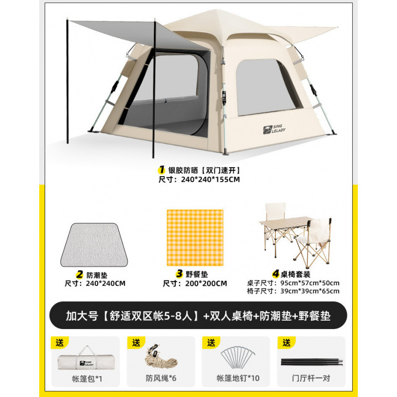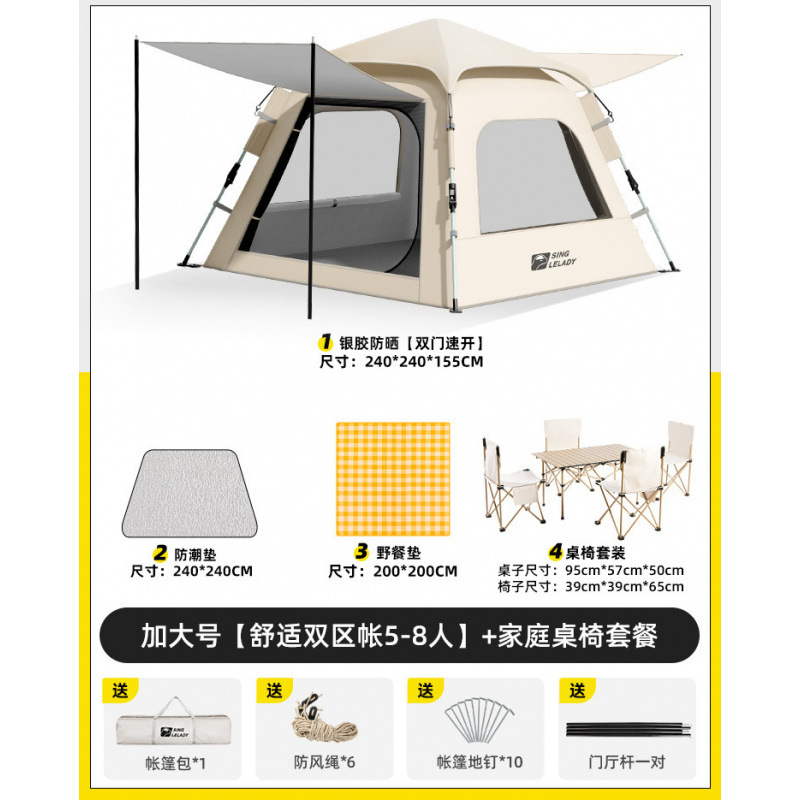 5-8 человек [двухзонная палатка Shuju·очень большой размер] + двойной стол и стулья + влагостойкий коврик + коврик для пикника!