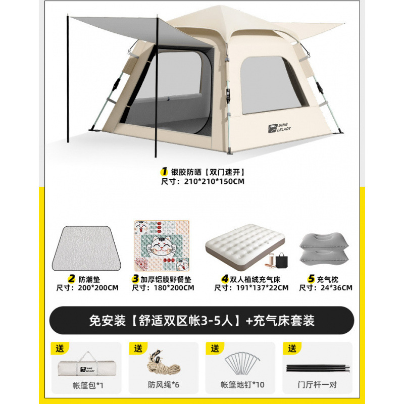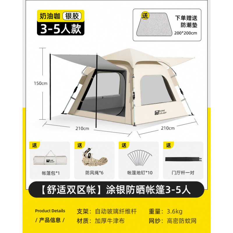 3-5 человек [двухзонная палатка Shuju · установка не требуется] + влагостойкий коврик + коврик для пикника (очень толстый кот 7 мм)!